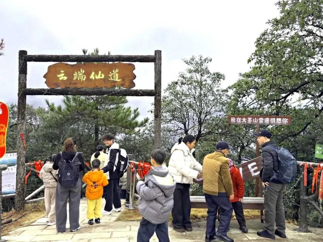 大茅山旅游度假区,游人络绎不绝、步履轻扬,大家身着崭新的服饰,崭新的衣袂随风轻拂,眉眼间满是藏不住的节日喜悦,欢声笑语漫过山间。