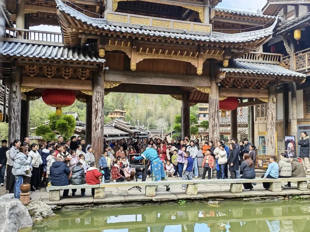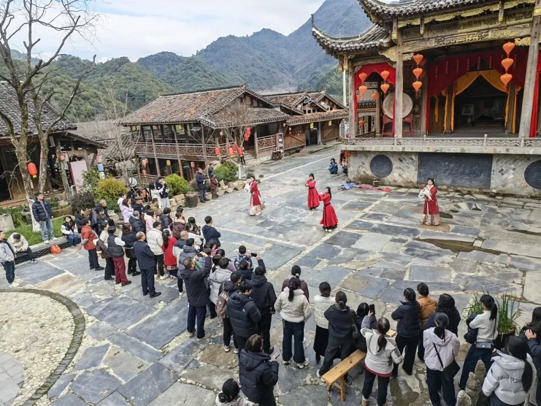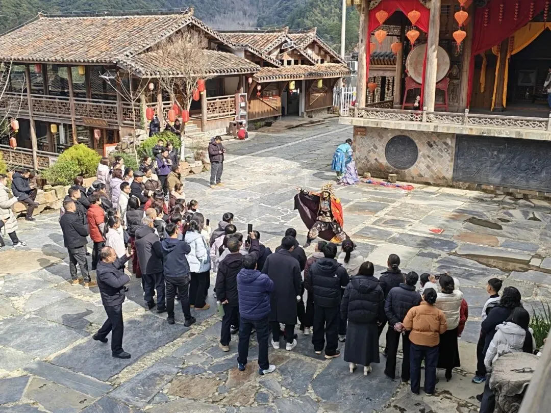 新春期间,德兴隐居石头部落人气持续攀升,成为文旅市场的一大亮点。白天,古戏台前传统民俗演艺轮番上演,非遗绝活、特色互动吸引了大批游客驻足观赏,大家或拍照记录,或参与其中,现场秩序井然,热闹非凡。