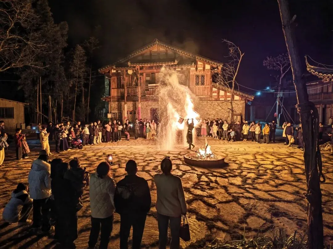 夜幕降临,篝火熊熊燃起,震撼的非遗打铁花表演将氛围推向高潮,璀璨的铁花在夜空绽放,八方游客围火而聚,在欢声笑语中感受民俗魅力,尽享新春团圆喜悦。
