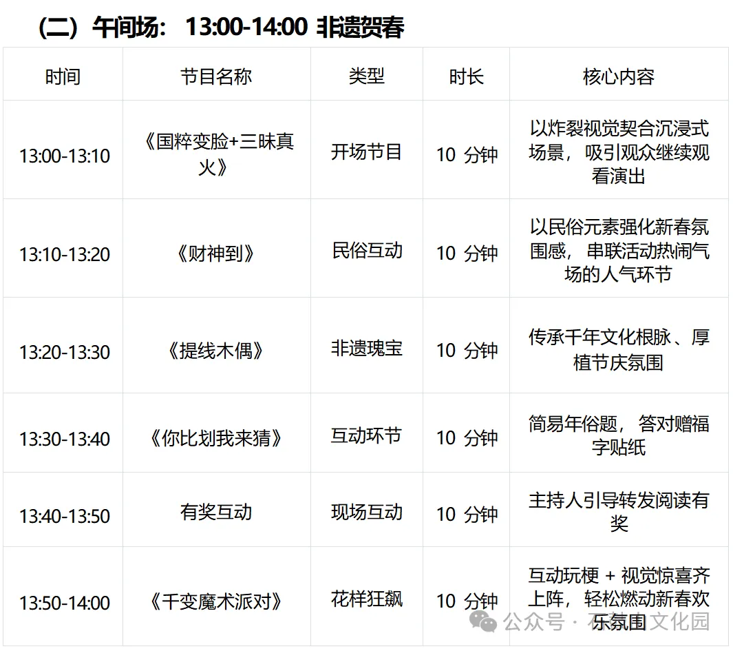 2026年春节初一至初六,每日四场