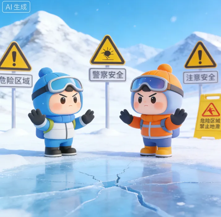 ★注意危险区域警示,远离不牢固的冰面、冰雕、雪塑,避免发生坠落、跌倒等安全事故。严格遵守有关规定,在工作人员指导下参与各类项目。