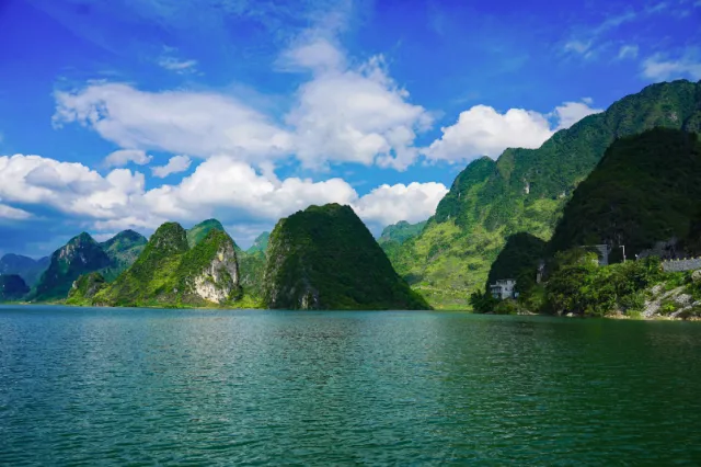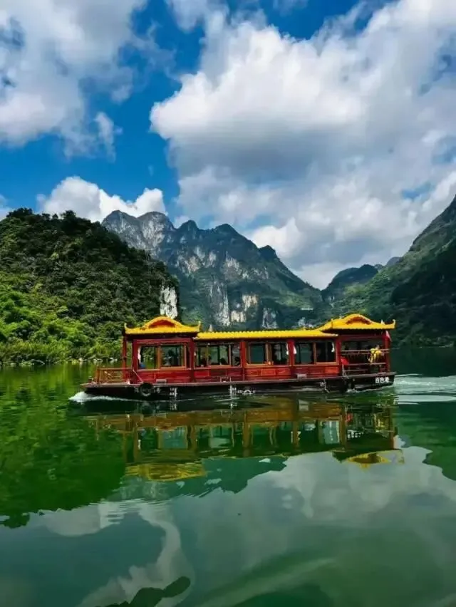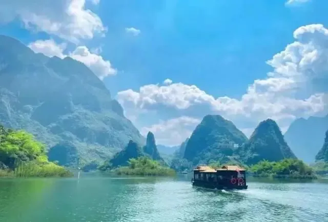 游船缓缓行驶其间,耳畔徐徐清风吹过 嘴边呼吸着清新空气 风景美如画,让人沉迷其中,流连忘返