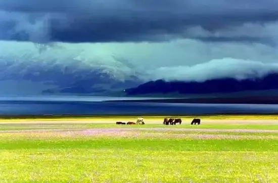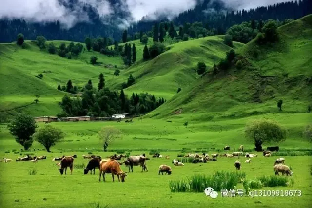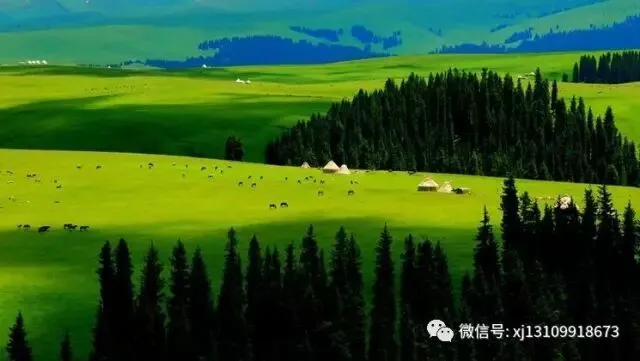 地处天山腹地,这里山峦起伏、绿草茵茵、辽阔的草原、柔美的溪水、俊美的群山和如涛之势的松林。