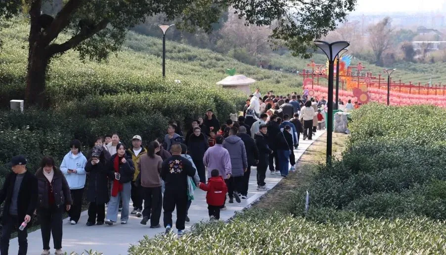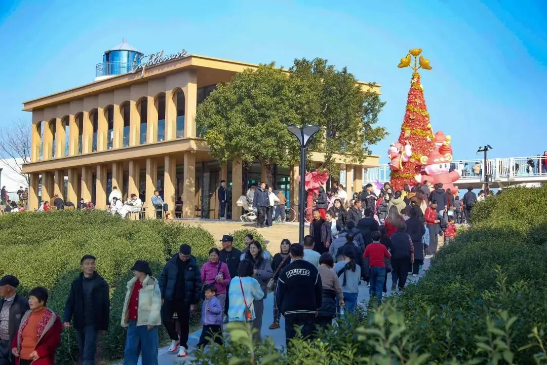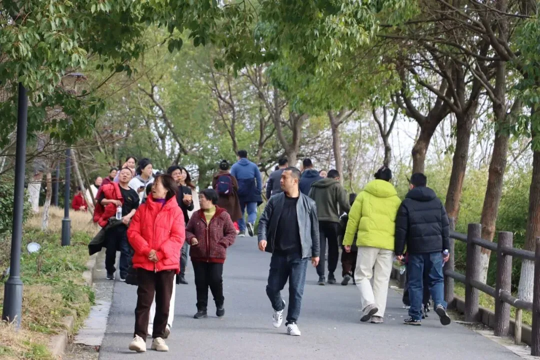 从月湖广场到登山步道,从灯塔餐厅到祈福长廊,人如潮水。停车场车位持续饱和,景区主干道人流如织,全家出游、好友结伴、亲子遛娃的游客络绎不绝,快门声、谈笑声、孩童嬉闹声交织在一起,新年的喜庆氛围扑面而来。