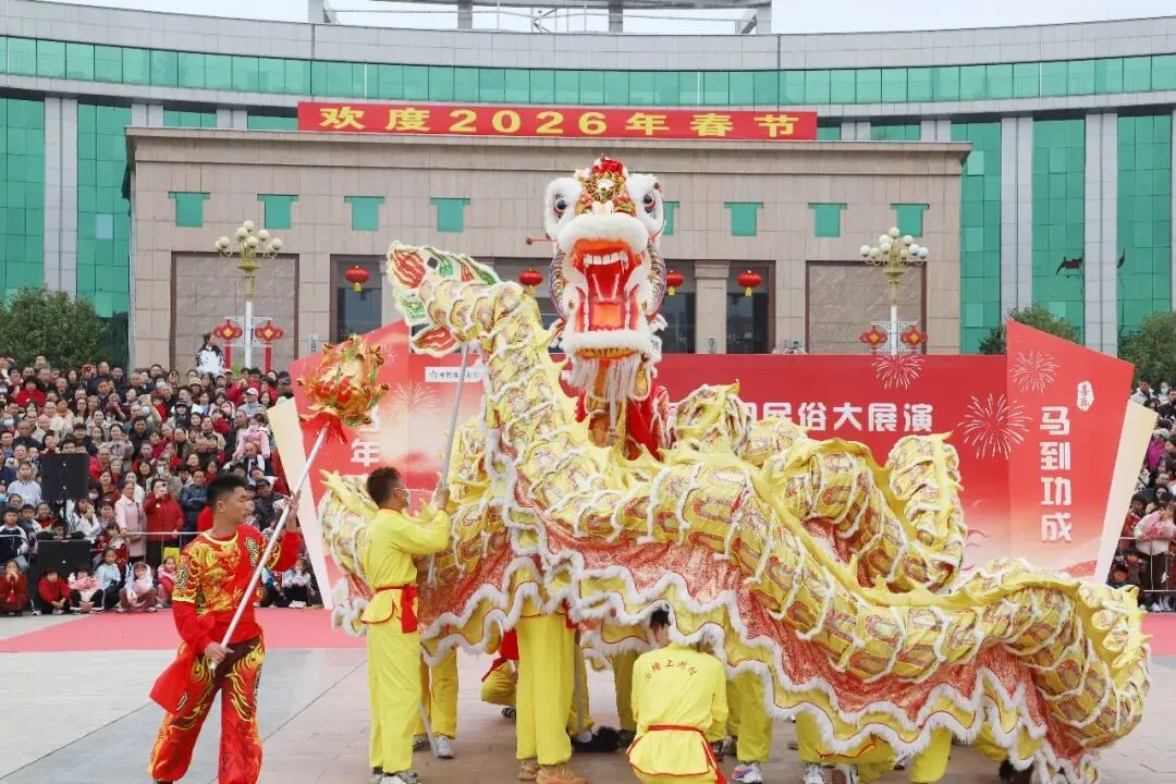 2026年民间民俗大展演如期举行。《舞龙》《舞春牛》《被狮情深·鱼跃吉祥》等民俗节目也相继上演,金龙飞舞,春牛憨态可掬,“被狮”与“鱼灯”的搭配更是妙趣横生,淋漓尽致地展现了佛冈本土文化的独特魅力。一场沉浸式的新春民俗汇演,将市民游客汇聚于浓浓的年味之中。