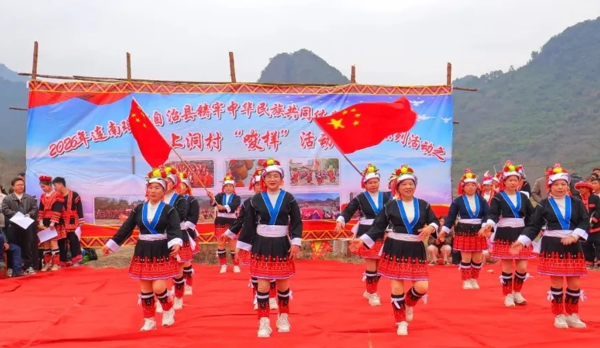 2026年连南瑶族自治县村歌村舞贺新春文艺演出上演别样精彩。《瑶寨风情》《吉祥中国年》等19个精彩节目轮番上场,兼具传统文化底蕴与新时代青春活力。视线移至连南乡村,大麦山镇上洞村的春节“唆样”活动也吸引8000余人共赏民俗。“唆样”为瑶语音译,意为“出行”与“出彩”,春节“唆样”也被列入第九批县级非物质文化遗产名录。