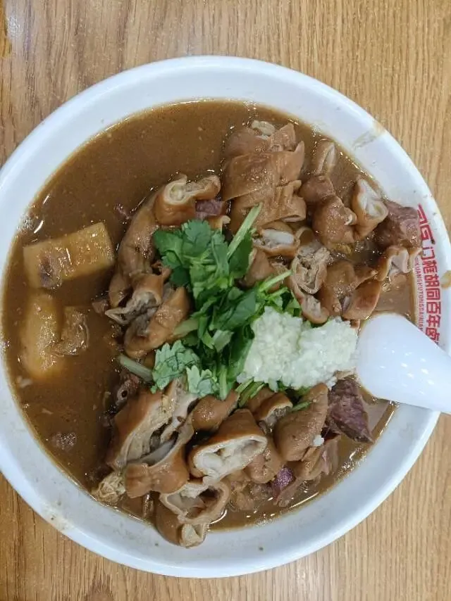 晚上去吃的门框卤煮,我点的小肠的,里面除了肠还有烩饼(硬硬的厚厚的应该叫这名儿吧😁😁)还有肺?还是什么,一个其他的内脏,我觉得整体有点咸,卤味儿蛮重的,肠儿量很多,吃不完系列