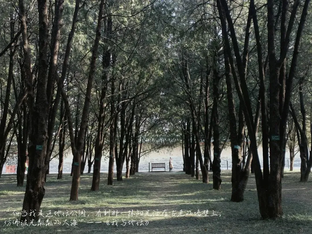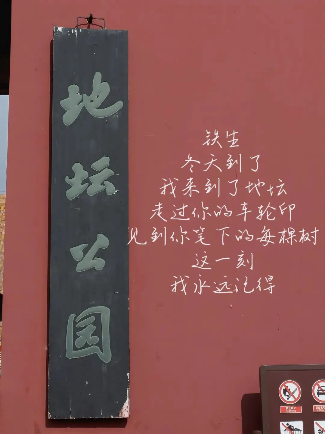 下一站是地坛公园,地坛公园挺大的,而且很适合游玩,好多老人锻炼身体…好多带明星名字领养的树,碰巧的是我找到了秦彻和小狸花领养的树,我还打了个卡
