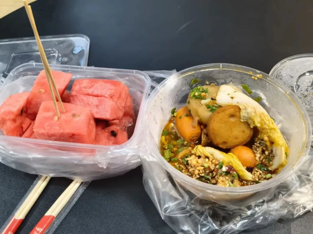 凌晨十二点我们到达烟台站啦 ,烟台的旅行攻略是小酒窝做的!夸夸他😚,跟我在一起后变J人了。按照他的规划,我们把酒店定在了烟台大学附近,价格实惠房间好且出行方便,从高铁站打车过去十几分钟就到了。在酒店下面买了一盒西瓜🍉和冷锅串串,回酒店两人边吃边看了一集JOJO,结束行程满满的一天!