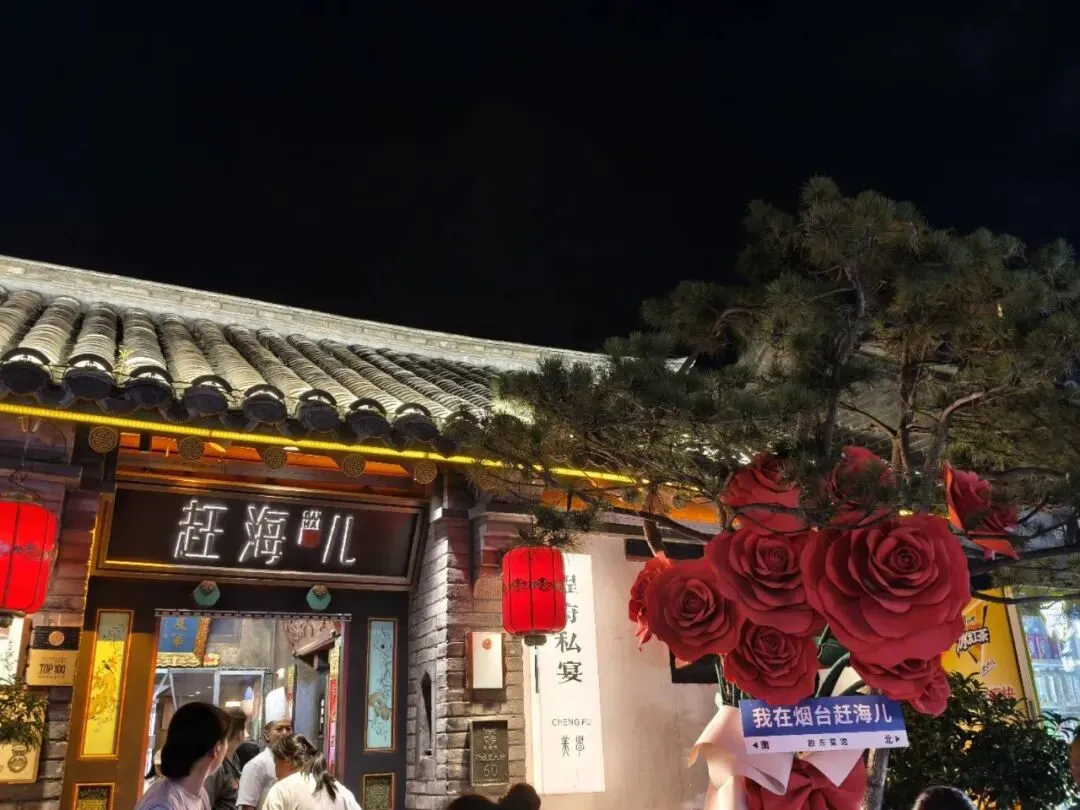 巷子里也有很多打卡点,我俩找到了带我们姓氏的大红灯笼🏮!还和带有烟台字样的墙壁合影,用照片定格瞬间,表示我们来过~