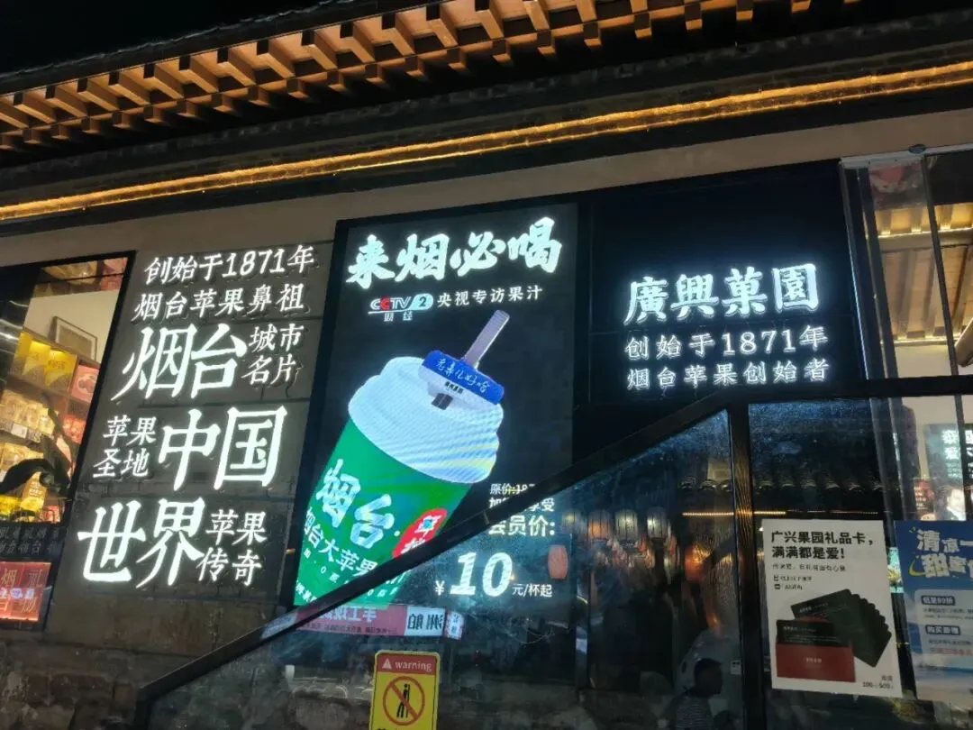 往里走这条街确实很有特色,我们一路逛逛,想着给室友同门带点小特产回去。看到一家名为广兴果园的特产店,店外墙上写着“创立于1871年、培育出中国第一个苹果”,这吸引了我。店里有很多苹果周边、文创、各种特产零食,确实很适合送礼。我们俩一起买了一个160元的果干大礼包,包含有苹果、梨、樱桃,一共有8大袋,还买了两盒包装精美的苹果酥送给小官和小实。当然还买了苹果醋和果汁卷自己吃,酸酸甜甜的!