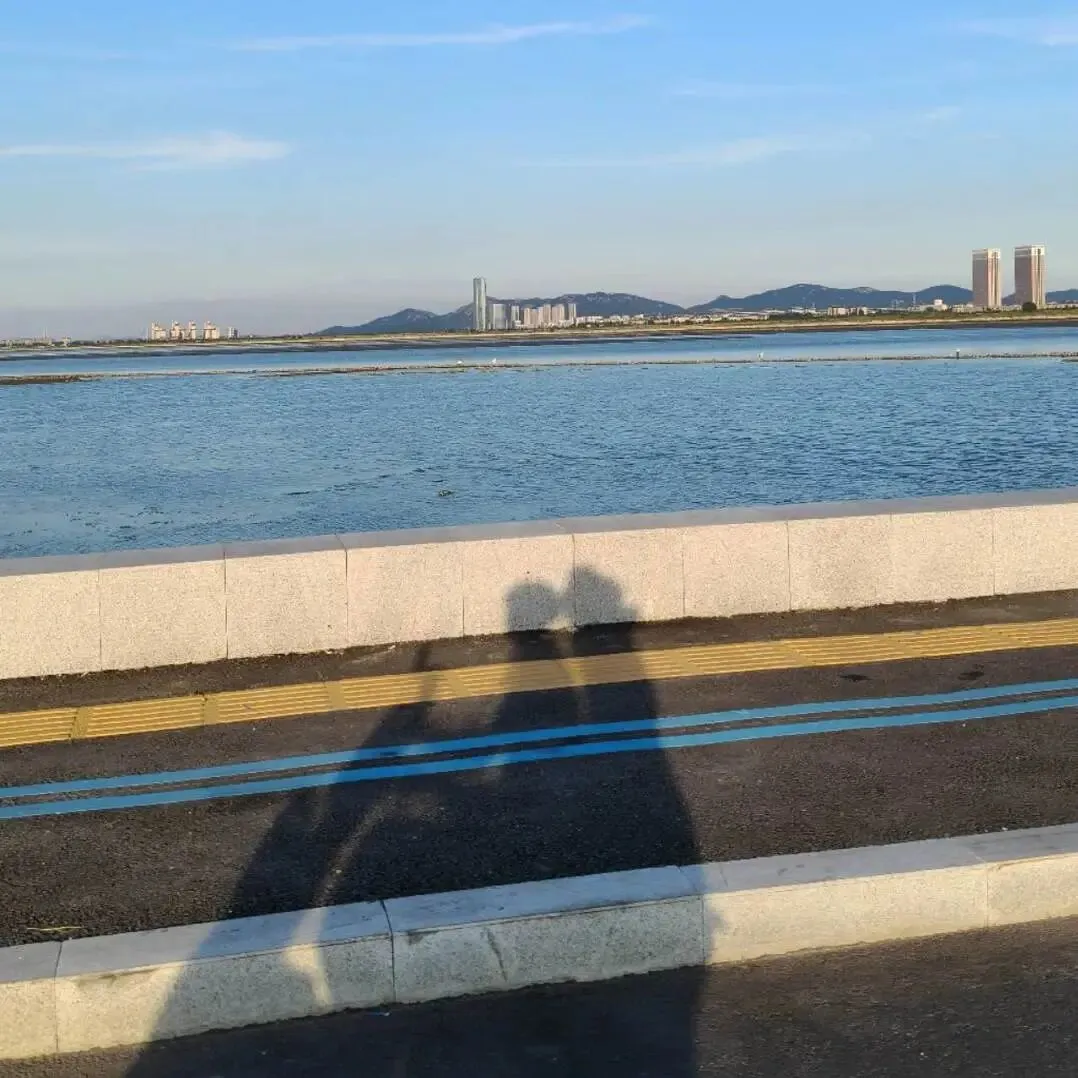 烟台的路又宽又平,基本不需要导航,也没有暴躁的司机😌 烟台也确实是海滨城市,海岸线很长,骑行路上吹着海风,凉凉的好舒服!我们俩一致认为烟台的海是最为宁静的海,能够让人慢下来沉浸式享受╰(*´︶`*)╯这里没有湍急的浪花,微风拂过海面也只是泛起层层涟漪。我们一路上骑骑停停,我在后座拿着相机咔咔拍,实在是太美啦!美得太不真实!