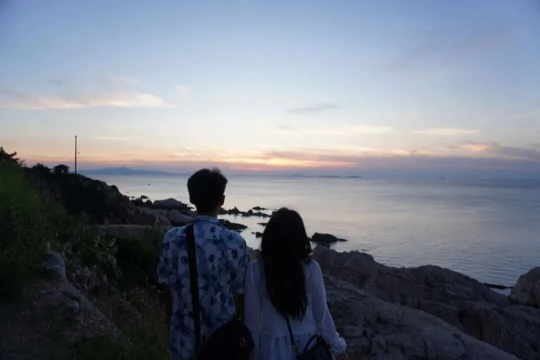 养马岛很大,真要认真玩的话需要一整天吧,但我们晚上就要离开烟台了,所以时间有限,只能选一两处地点看看 。这里骑行兜风的游客很多,吃完晚饭过来兜兜风散散心确实很爽,太晚了我们没看到果冻海。但是在獐岛看到了绝美日落🌇!非常漂亮!我还帮某人拍了转场视频嘻嘻(也不知道什么时候才能剪完视频...)