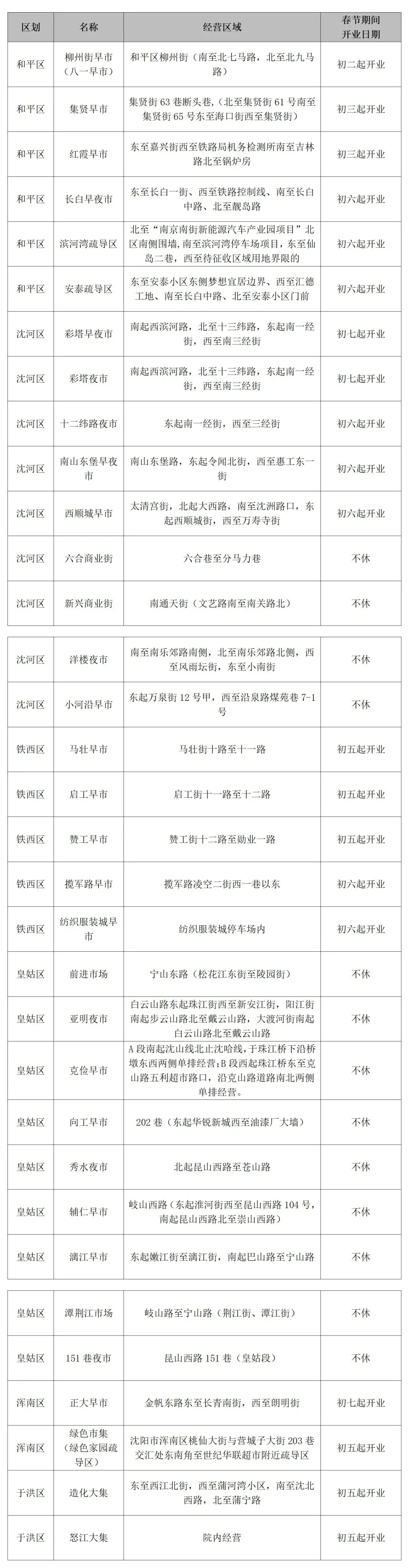 沈河区(初六起开业)