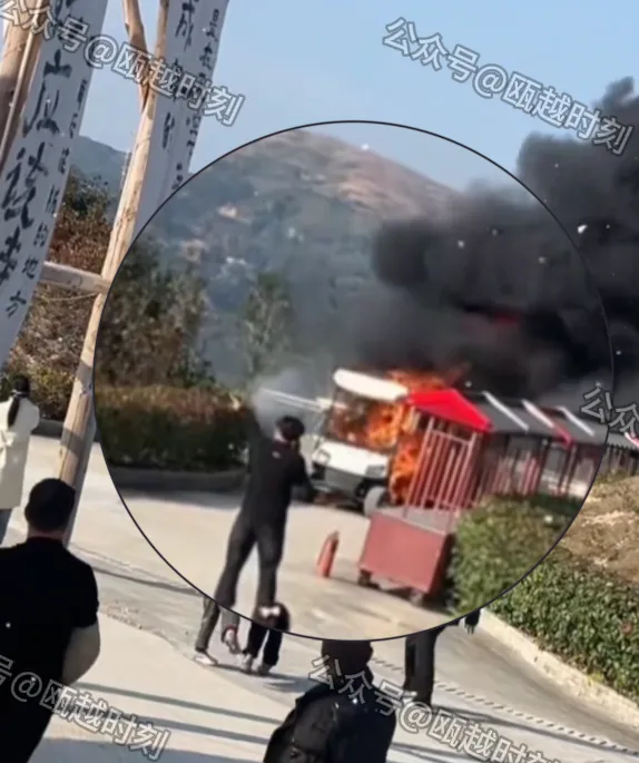 2月19日,有网友发视频曝光:泰顺矿坑冰城附近,一辆旅游观光车突发火情,现场浓烟滚滚,情况危急!