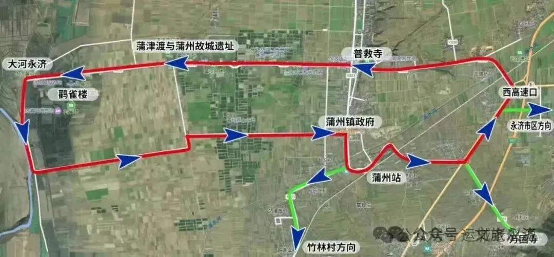 ✅ 通行路线:普救寺 → 蒲州故城遗址(黄河大铁牛)→ 鹳雀楼
