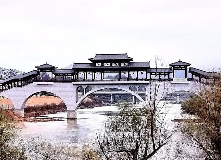 建宁程家廊桥卧在友兰溪上。采用“木伸臂梁”工艺向河心延伸,未用寸铁,全凭榫卯相衔。应为清代所建,全长约30米,宽约4米,为单孔木拱廊桥,桥上建有廊屋,廊屋两侧设有栏杆和座椅。桥身由鹅卵石砌成桥墩,桥面廊屋为穿斗式木构架,屋顶覆盖青瓦。廊桥的木雕、石雕工艺精湛,梁枋、斗拱、雀替等部位有花卉、人物、瑞兽等雕刻图案。是建宁历史文化的重要载体,见证建宁发展变迁,为当地旅游景点之一。