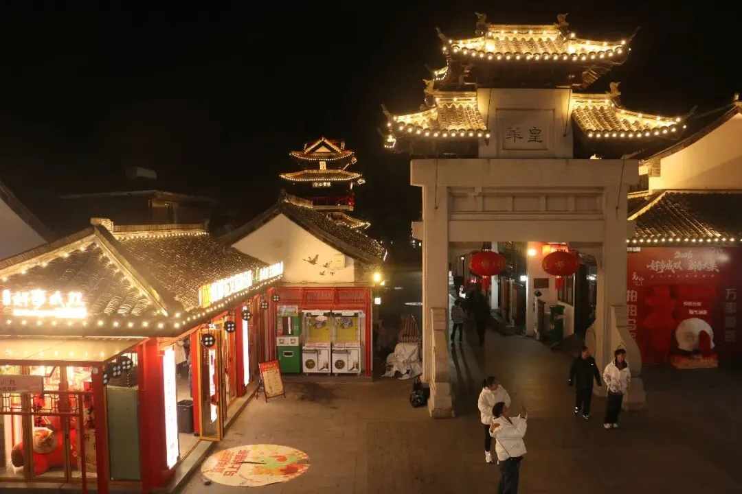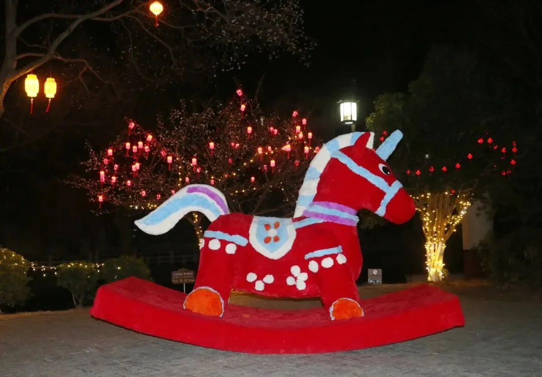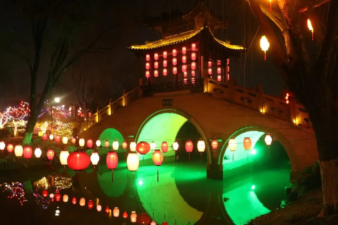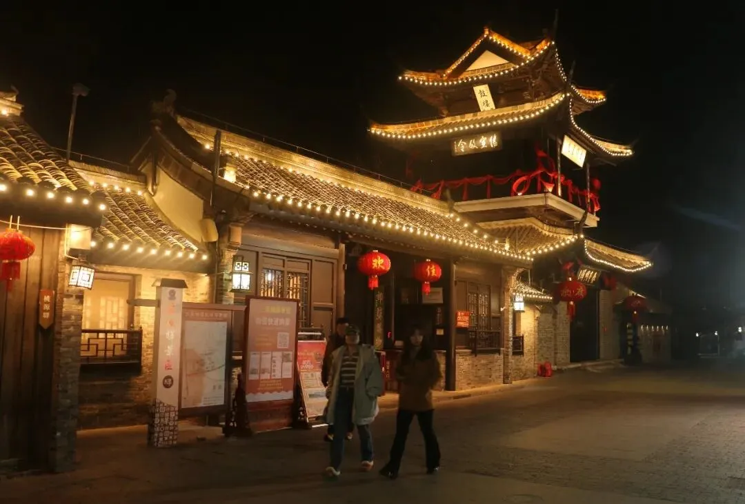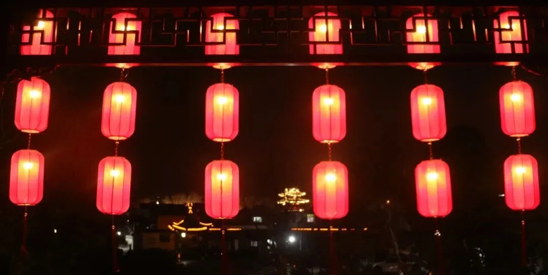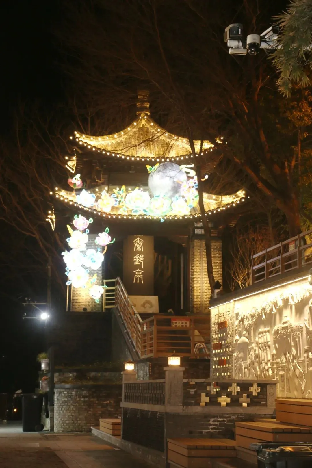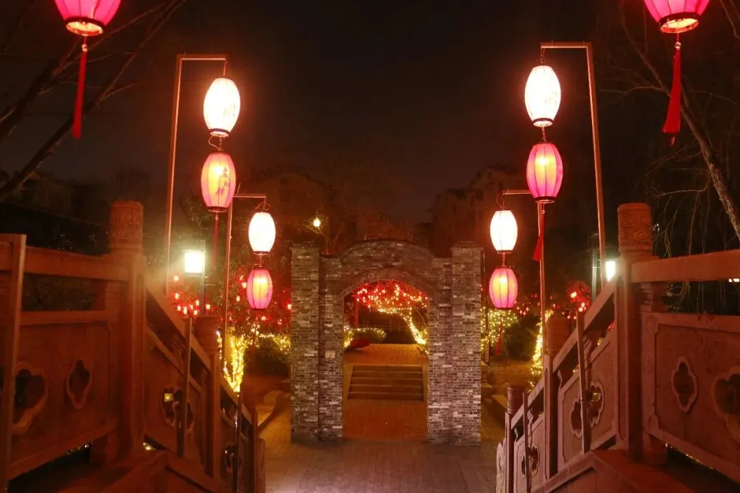 春节的景区用灯光打扮得五光十色,灿烂辉煌,熣灿的景区必须夜游,晚9时到达景区。
