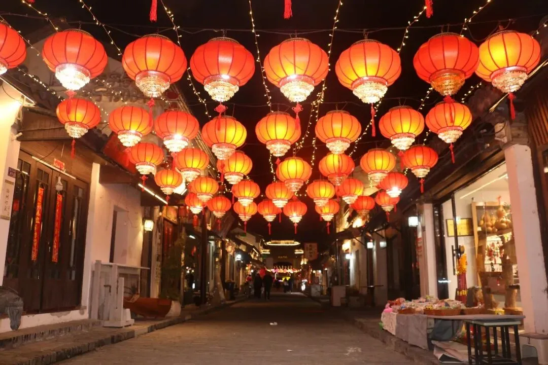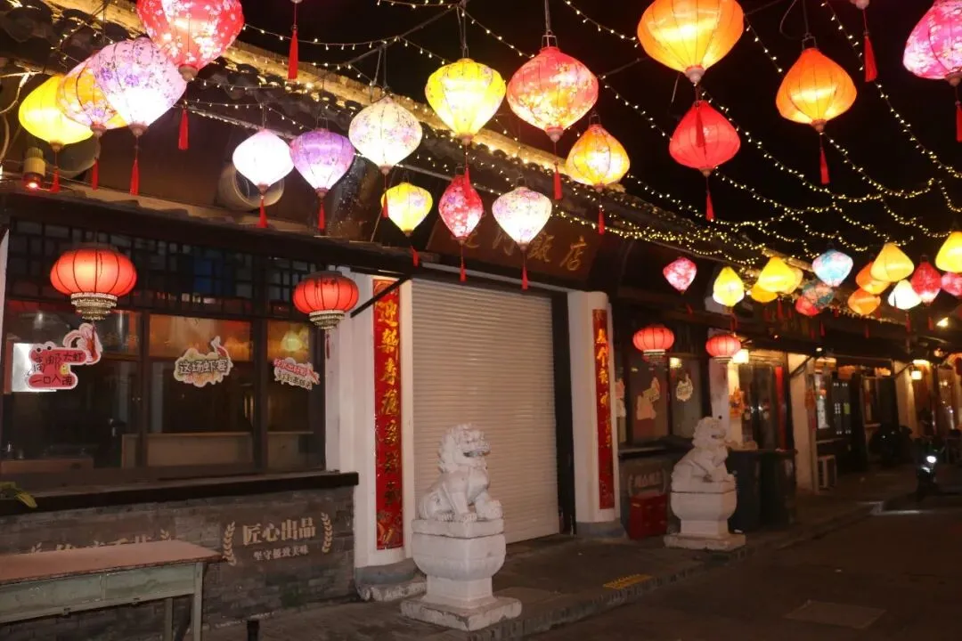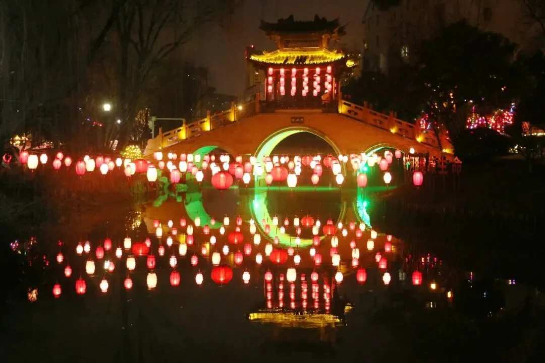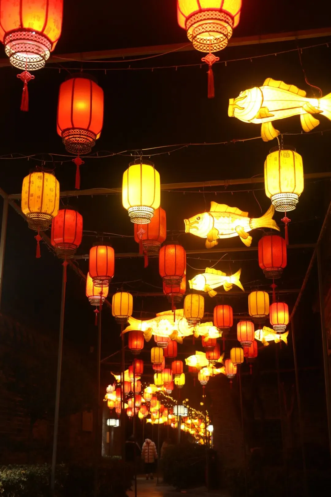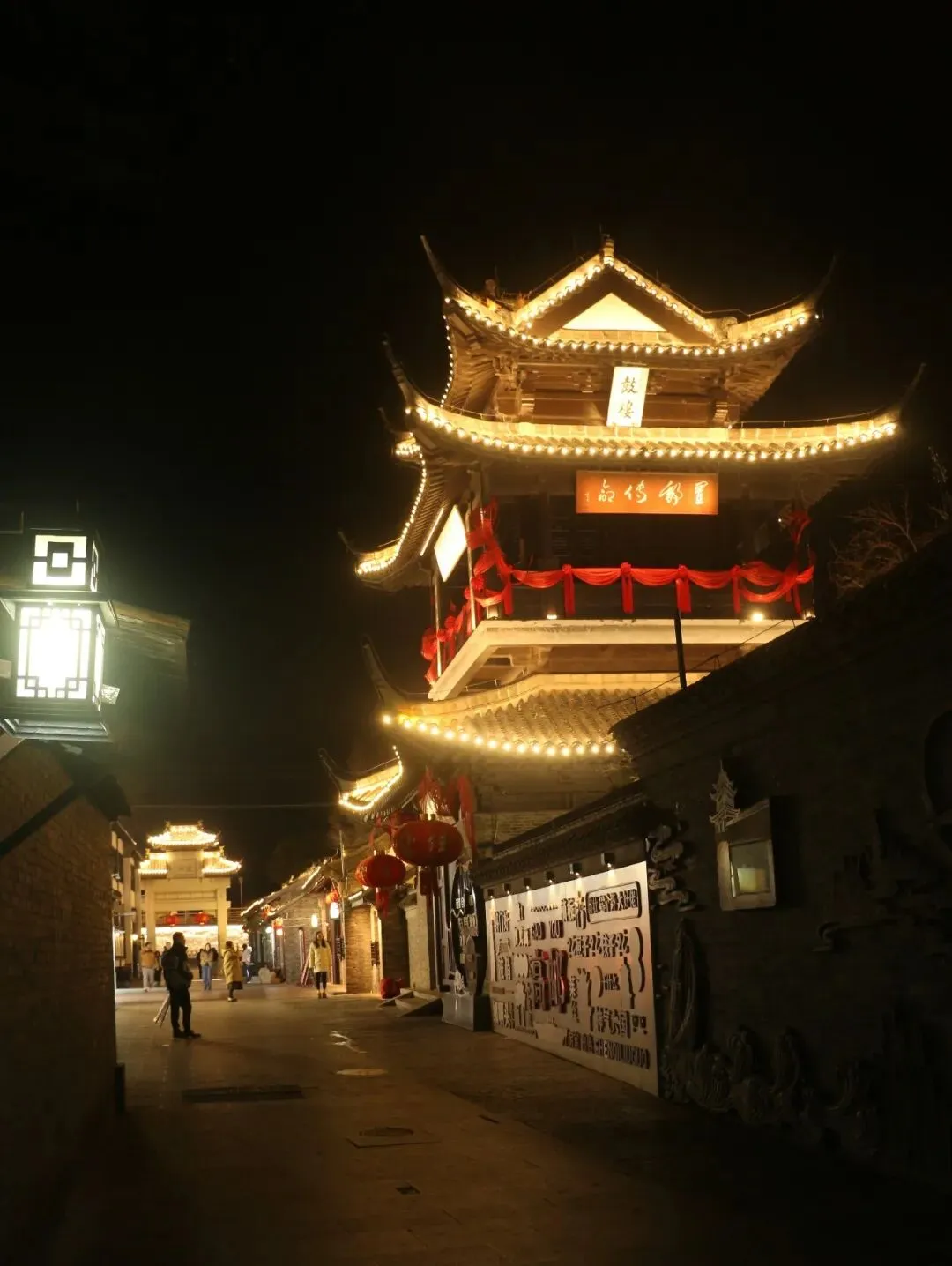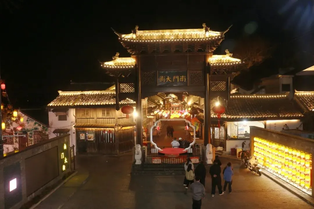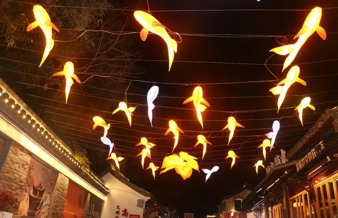春节的景区用灯光打扮得五光十色,灿烂辉煌,熣灿的景区必须夜游,晚9时到达景区。