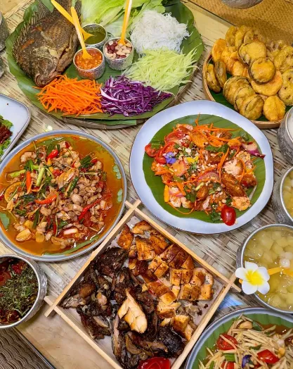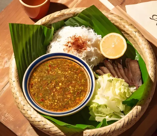 第一美食:傣味撒撇——舌尖上的酸辣苦这是瑞丽美食的“灵魂”。分为苦撒和柠檬撒。苦撒是用牛苦肠汁拌牛肉,初尝有点苦,越嚼越香;柠檬撒则清爽酸辣,开胃神器。推荐去“岳大妈棒赛撒撇店”,老板会根据您的口味调整苦味,第一次吃建议选微苦版。配上米线和烤干巴,一顿饭能吃出人生百味。人均50元。