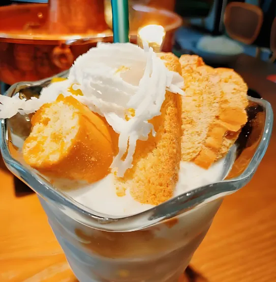 第二美食:泡鲁达——解辣神器瑞丽的天气热,泡鲁达就是救命稻草。这是缅甸传入的甜品,用椰奶泡着面包干、西米露、紫米露,再撒上炼乳和椰丝。一口下去,冰凉香甜,解辣又解腻。推荐去“步步冷饮店”或者夜市摊,只要10-15元一杯,料足到吃不完。