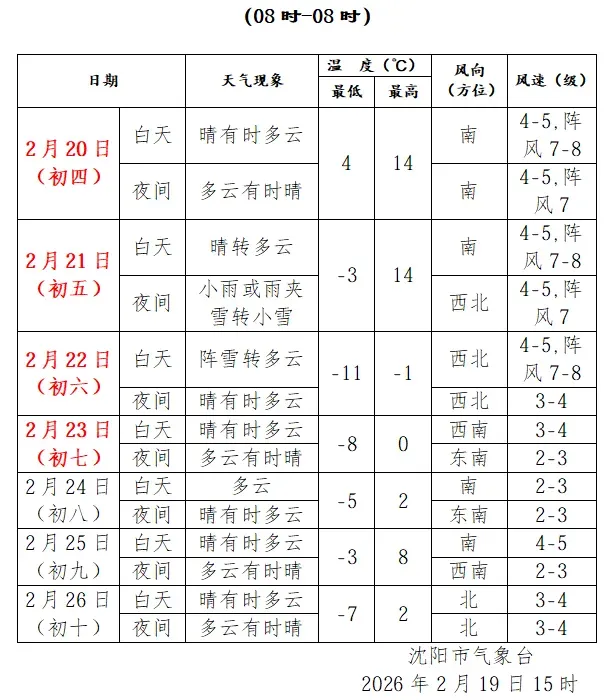 小编查询了接下来几天沈阳的气温,初四、初五两天最高气温将飙升到14℃!这个温度,恐怕真的要开化了~千万别去河面上走!