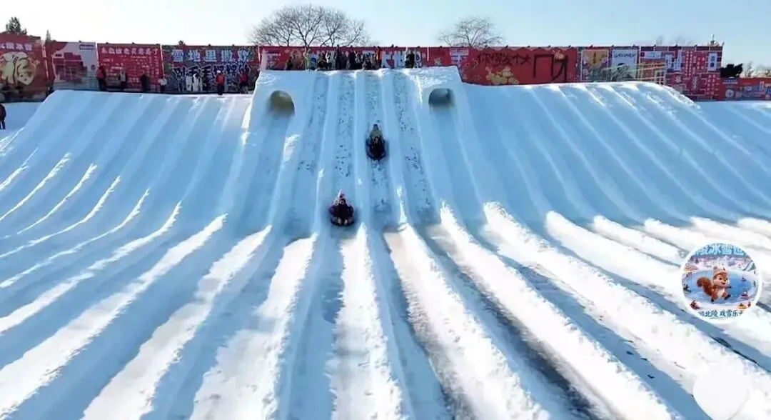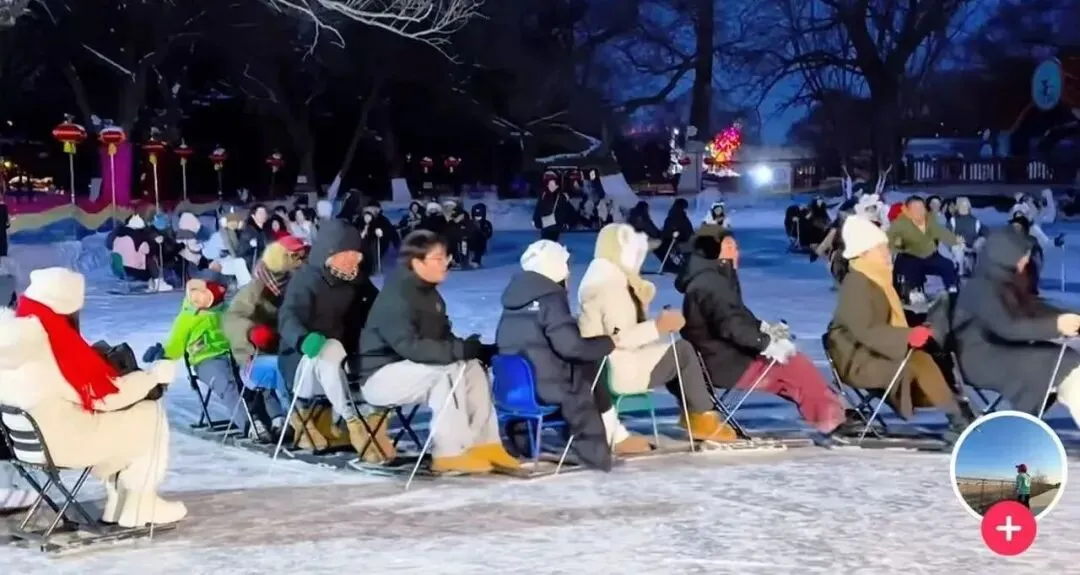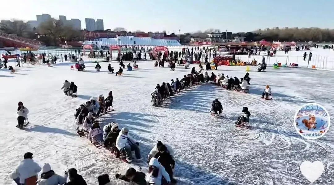 特别是园区近年推出的“冰车贪吃蛇”项目,更是刷屏了短视频平台——一辆辆冰车首尾相连,在冰面上组成长长的“贪吃蛇”,游客们你追我赶、欢声笑语不断。许多南方朋友都把人生中第一次和陌生人一起滑冰车的愉快经历,留在了这片热闹的冰场上。