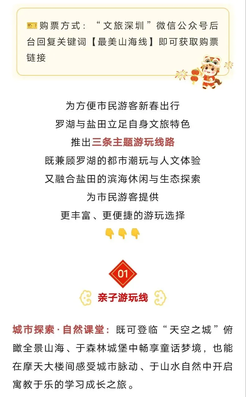 您现在的位置是:首页 > 国内旅游目的推荐 > 正文 国内旅游目的推荐 深圳罗湖盐田,春节旅游攻略! admin2026年02月20日 01:06:14国内旅游目的推荐8 深圳罗湖盐田,春节旅游攻略!来源:深圳教育 转载请说明来源于"旅荐网",部分内容转载自网络,如有侵权请联系qlwl@foxmail.com删除 本文地址:https://www.15386.cn/post/115497.html 上一篇 【南京旅游】夫子庙观灯要预约 下一篇 中国十大超级景点,去过4个及格,去过8个了不起!! 相关文章 北京旅游最佳天数建议:3天、5天、7天怎么玩? 四川旅游路线图. 速看!去了 3 次丽江,整理出的保姆级旅游攻略! 川进青出自驾15-17天详细路线:318川藏亚丁羊湖青藏 俄罗斯自由行避坑攻略|新手必看12条实用干货,少走弯路 安全提醒!旅游“防汛全攻略”请收好 两天半,游太行山N个景点,攻略、行程和体会,来了! 2026年教师资格证景区优惠全攻略(免票+半价),清明节你想好去哪了吗? 全国旅游景点攻略-浙江地区-杭州 丝路庭州·春满昌吉——昌吉州春季旅游线路上新! 发表评论 取消回复 评论列表 这篇文章还没有收到评论,赶紧来抢沙发吧~
