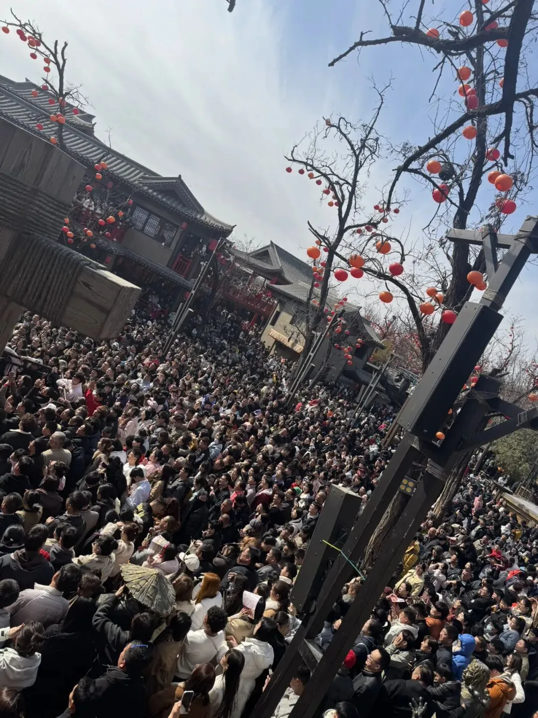 我们没能约上传说中的《三打祝家庄》,也错过了绚烂的打铁花。行走在园区里,每一步都像企鹅一样,小心翼翼地在人群中挪动。