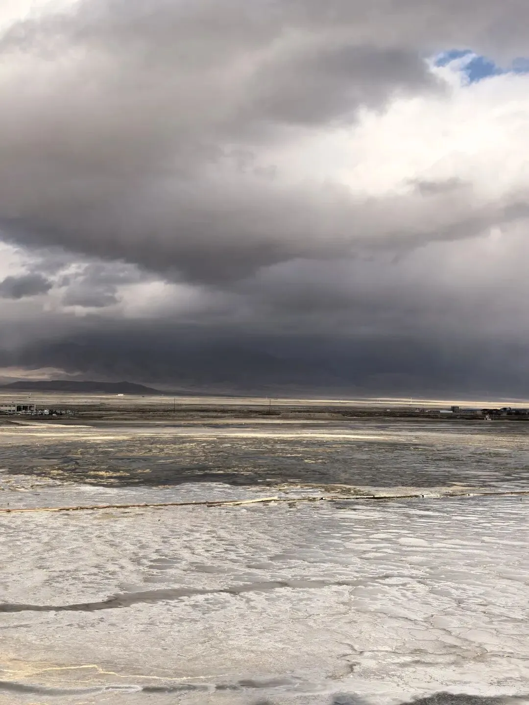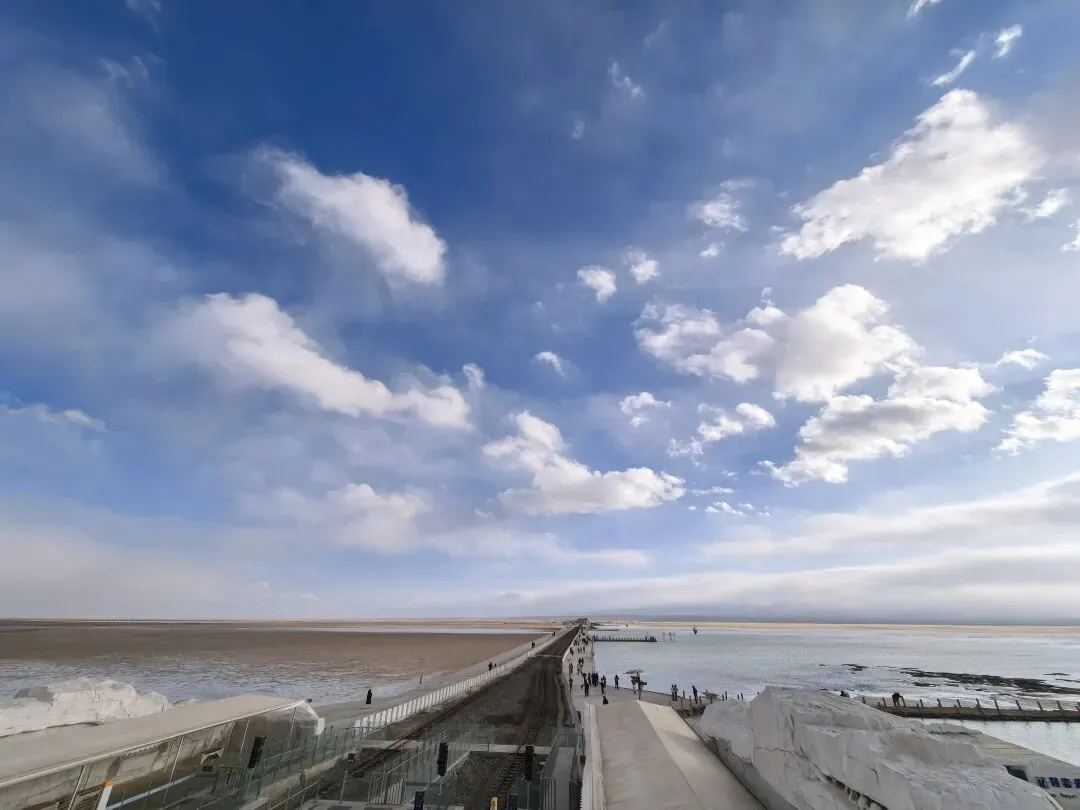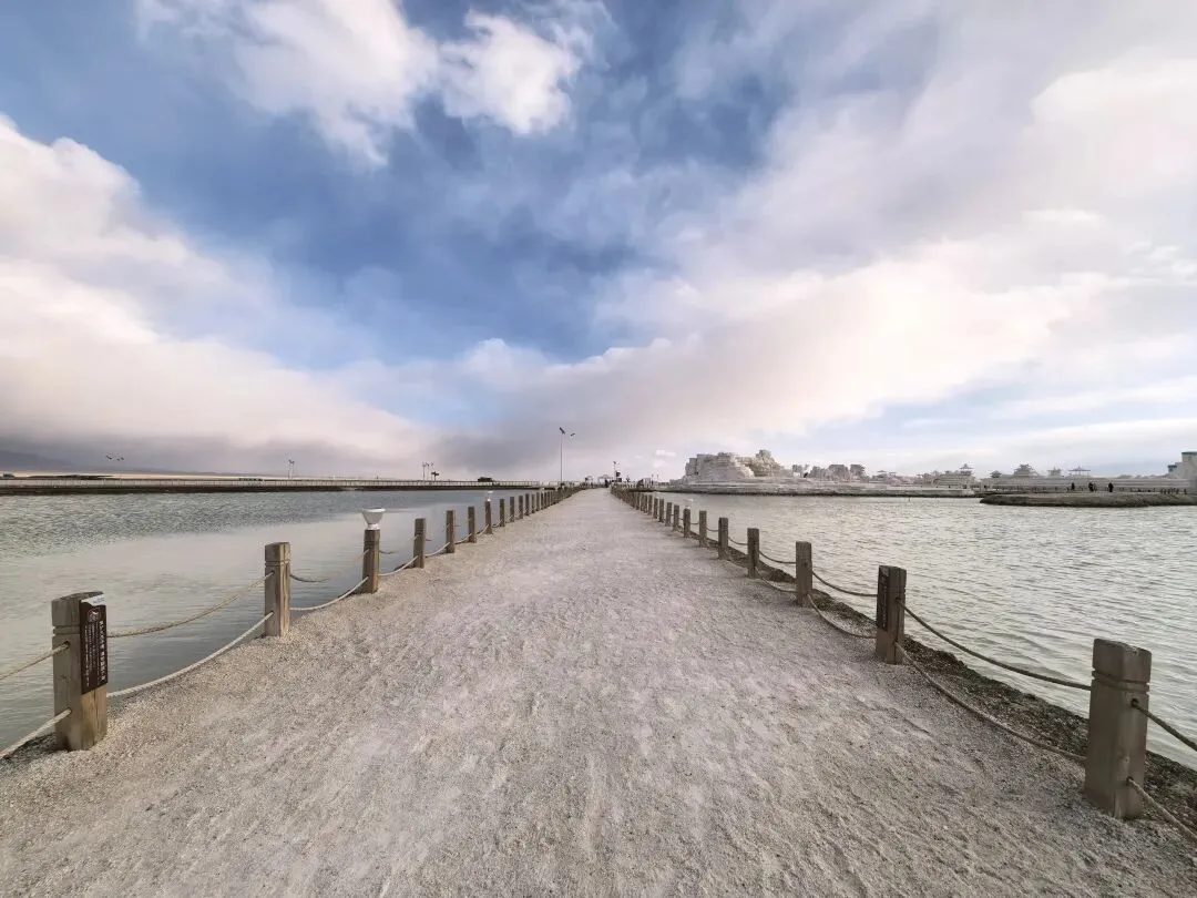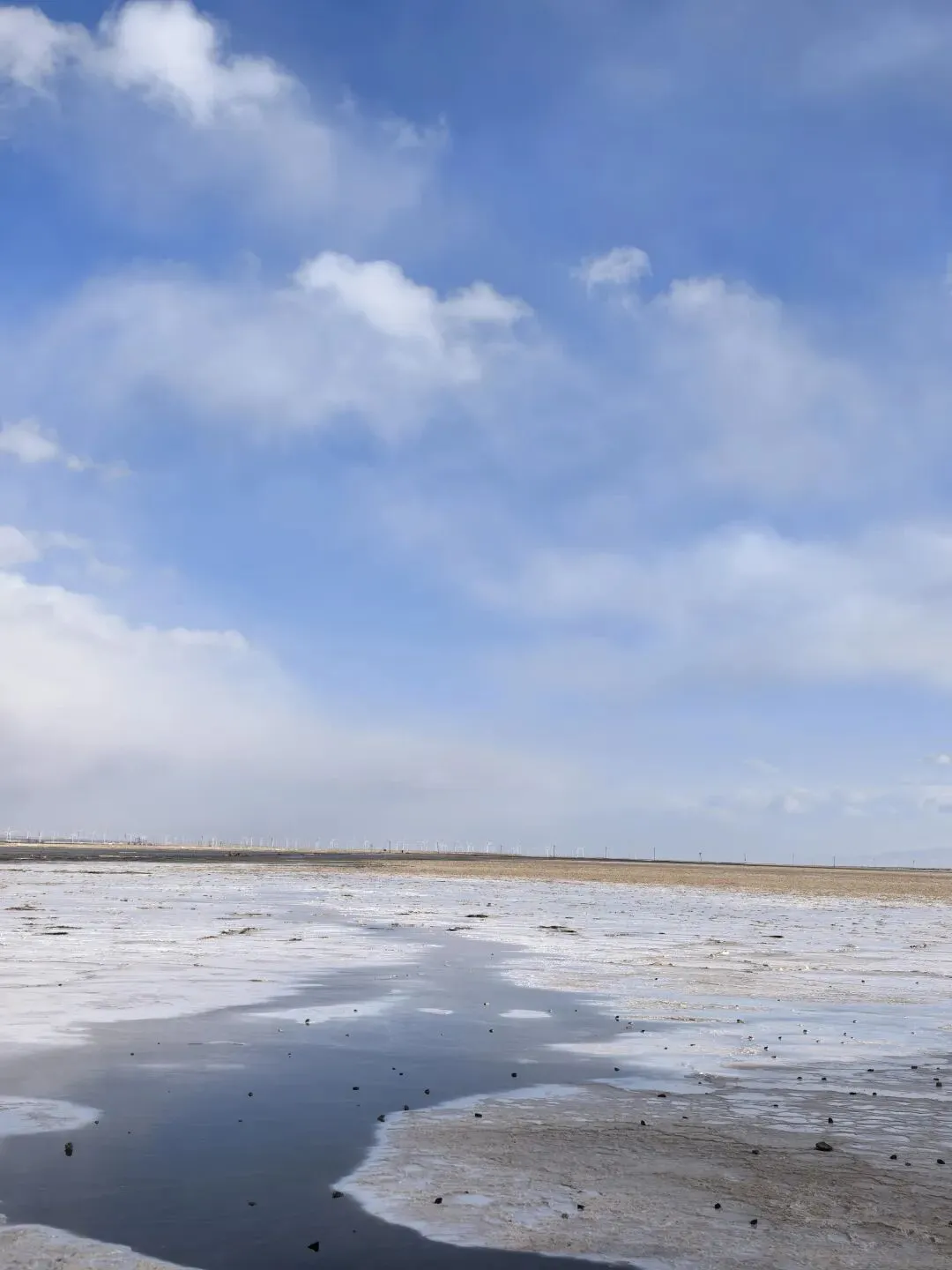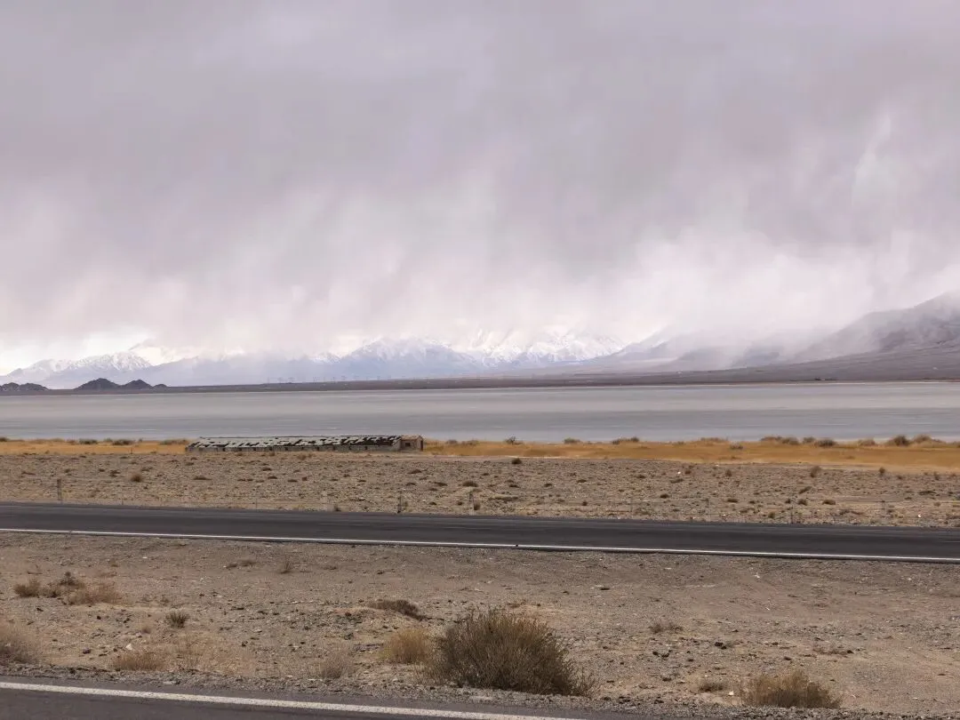 风大,云彩就跑得快,天气变化也快。前一秒还阴着,后一秒阳光洒在盐湖上,白茫茫一片刺眼。