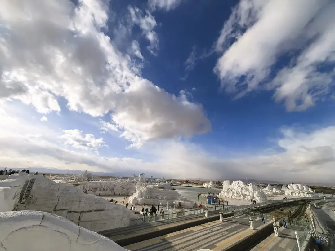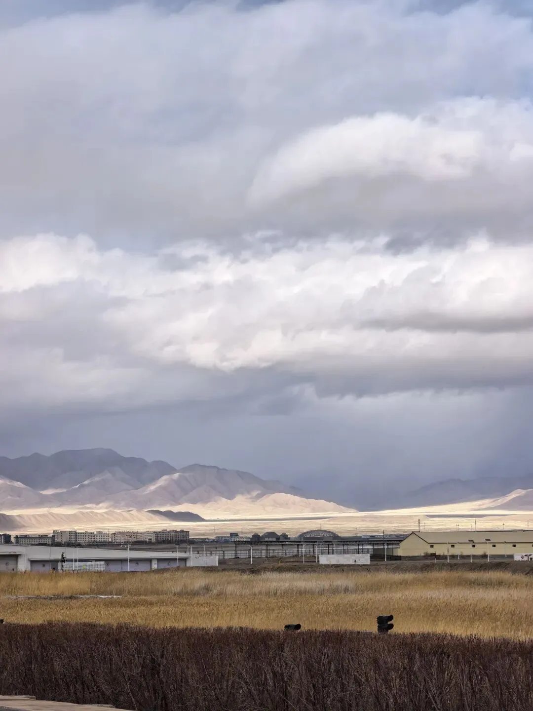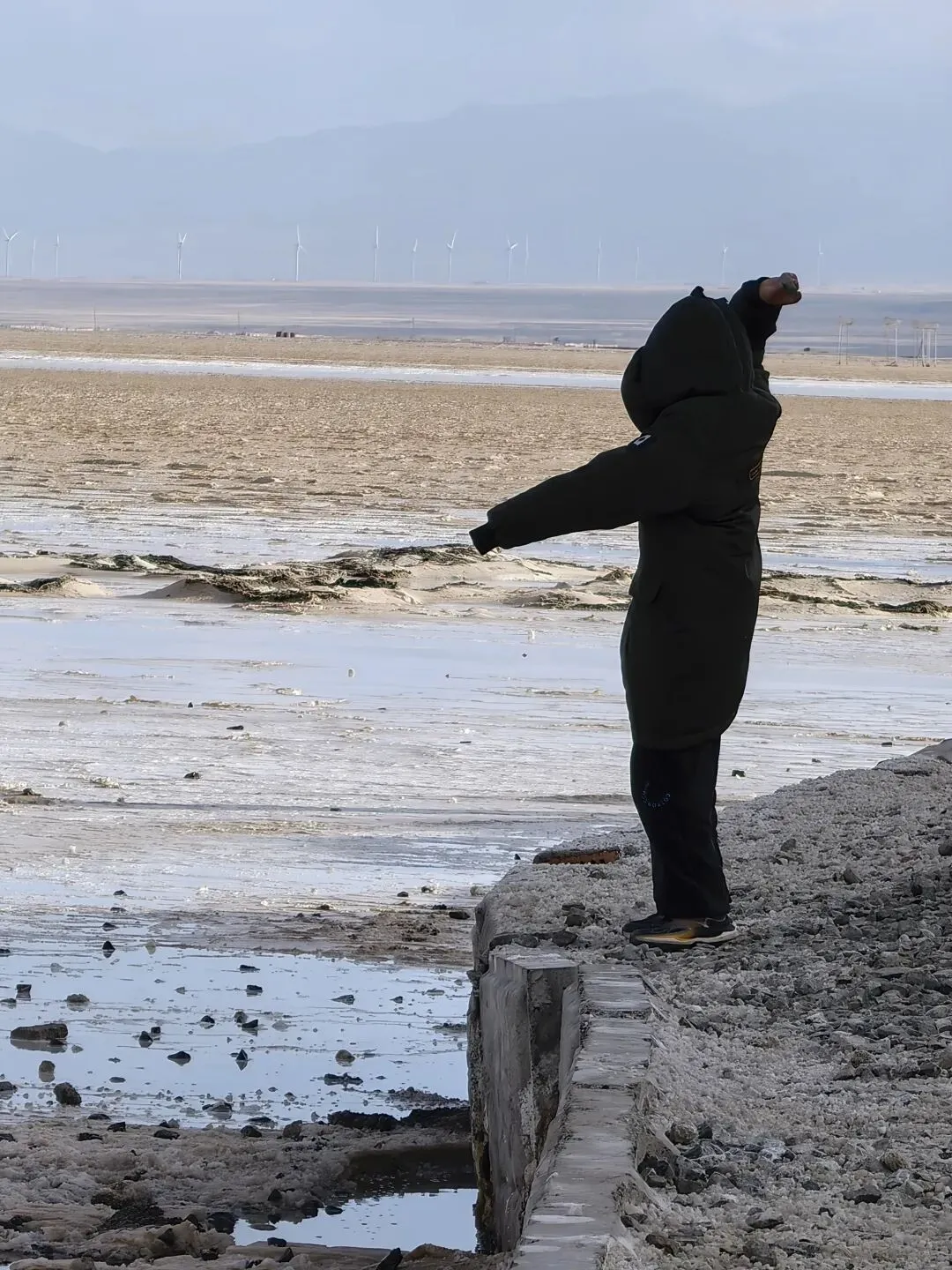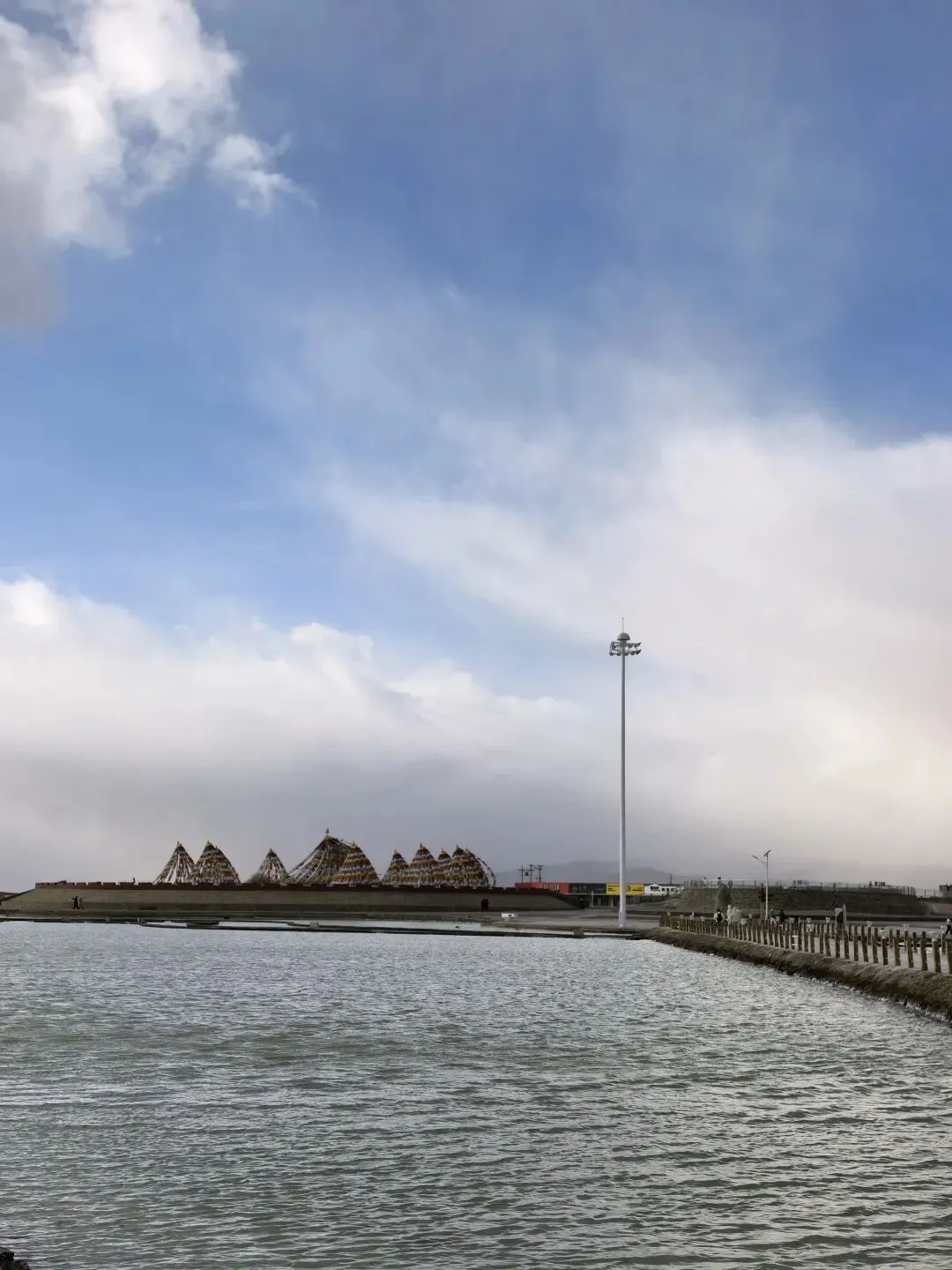 风大,云彩就跑得快,天气变化也快。前一秒还阴着,后一秒阳光洒在盐湖上,白茫茫一片刺眼。