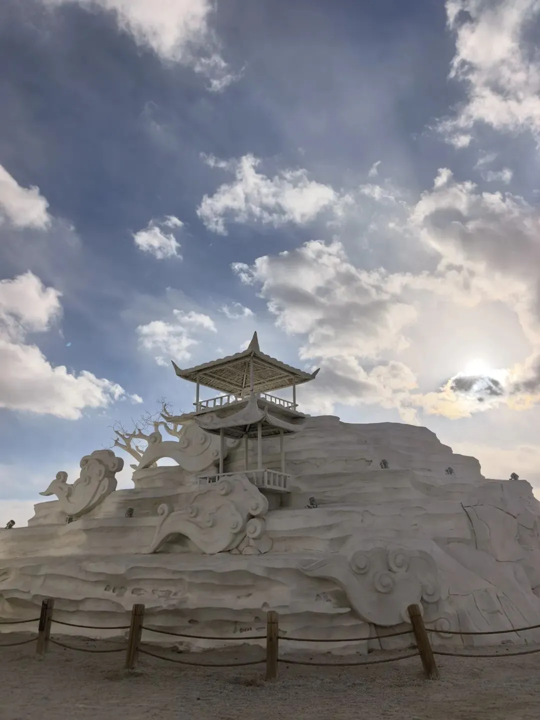 我们到的时候,风巨大。有多大?我觉得至少6级,风冷刺骨,顶着风根本走不动,还好进景区方向是顺风,等于被风推着走。但是手轻易不敢拿出来。