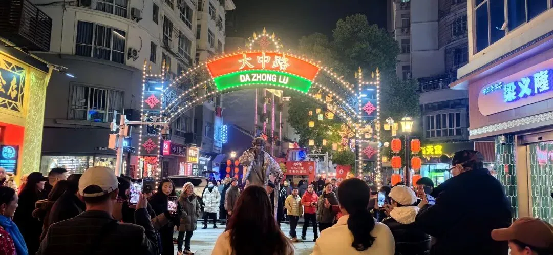 “欢乐九江GO 花开盛市闹新春”活动在大中路历史文化街区、洋街火热开展。街区布置打卡点与新春装扮,年味十足。实景演出、非遗巡演、舞台表演、民俗互动轮番上演,市民游客逛街市、看演出、品年味,沉浸式感受老街区新活力,节日氛围浓厚。
