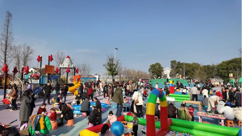 浔阳江畔,身着汉服的NPC穿梭于游人之间,一瞬之间,浔阳仿佛 “回到了” 江州司马的时代,沉浸式体验拉满;琵琶亭前,民乐婉转悠扬,余音绕梁,引得行人纷纷驻足聆听;浔阳楼内,水浒评书绘声绘色、妙趣横生,让人仿佛身临其境;锁江楼中,游客们将写满美好期许的祈福带系于树梢,寄托对新年的美好祝愿;长江国家文化公园(九江段)的儿童公园里同样人头攒动,阳光下孩童们肆意奔跑、嬉笑玩耍,浓浓的浔阳年味,就在这一片欢声笑语中温暖绽放。