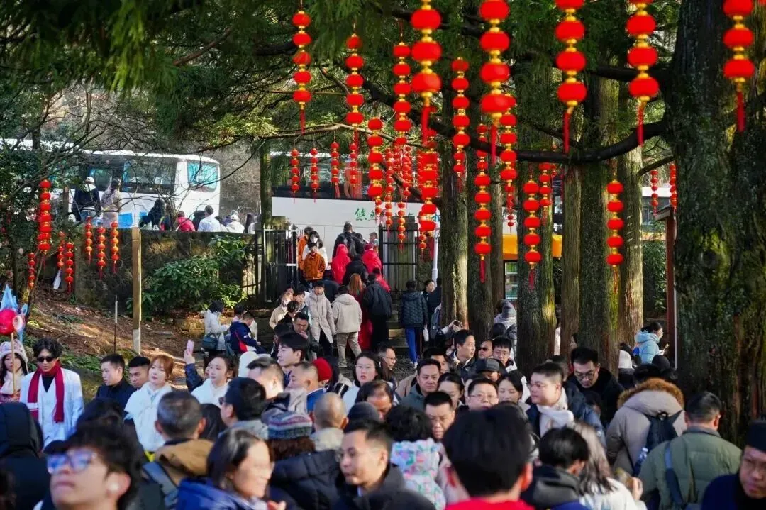 来自五湖四海的游客汇聚于庐山,在这座世界名山的山水之间寻年味、纳福气,共同绘就了一幅热闹非凡的新春图景。