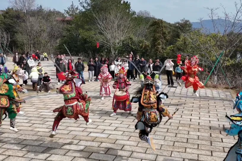 庐山西海司马码头热闹非凡。四条彩龙即兴“蹦迪”,英歌队气势登场,古装舞者灵动互动。云居岛上,六十年书法大爷现场写福,亲子拓印骏马、游客对弈西海仙子、采茶戏婉转开唱,更有西游师徒惊喜巡游。天天有好戏,处处是年味,山水间尽是新春烟火气。