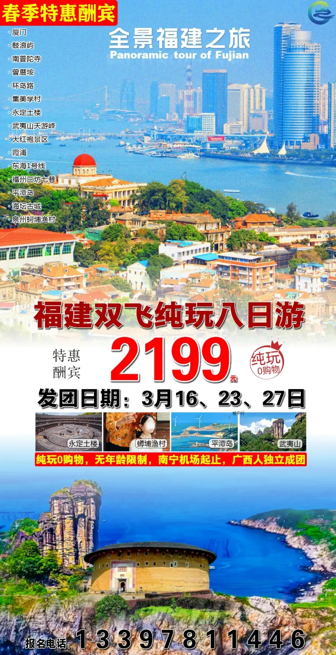 【厦门】3月 福建厦门 旅游线路推荐 报名优惠!