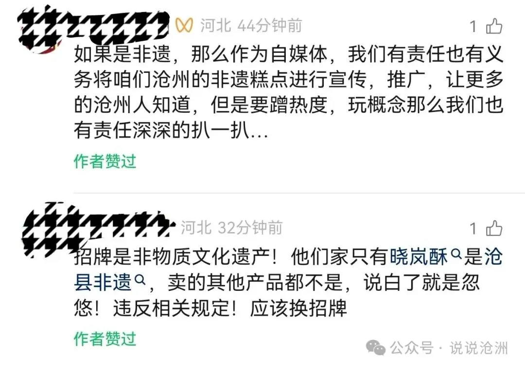网上查询得知,这家店铺目前只有晓岚酥是沧县认定的非遗,而其他食品根本不是,也难怪网友评论说是“挂羊头卖狗肉”。