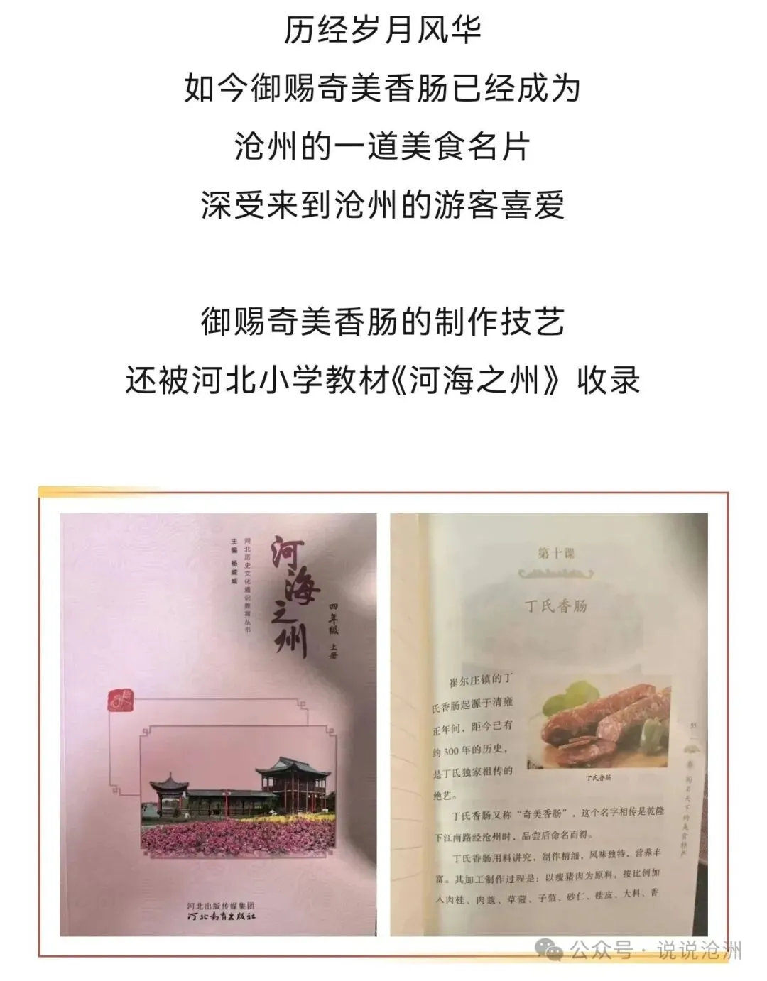 御赐奇美香肠独家祖传绝艺,乾隆二十二年四月,乾隆皇帝下江南,经运河水路到达捷地闸口时,伴驾南巡的大学士礼部尚记纪晓岚将这道美食进上。