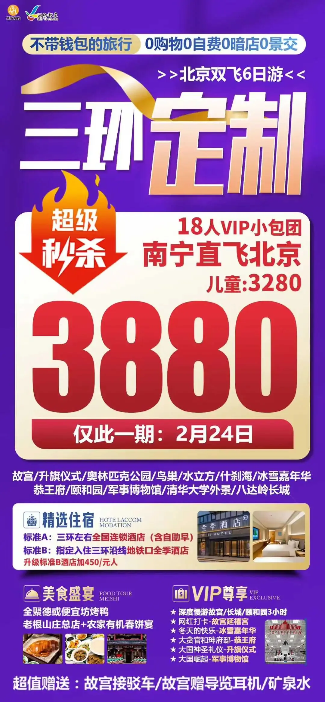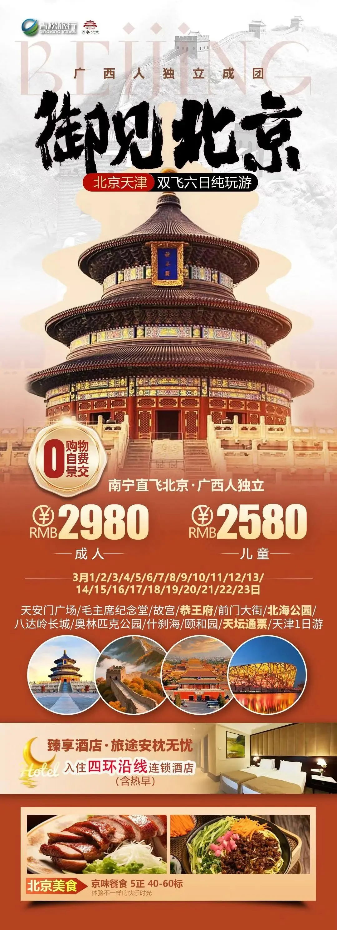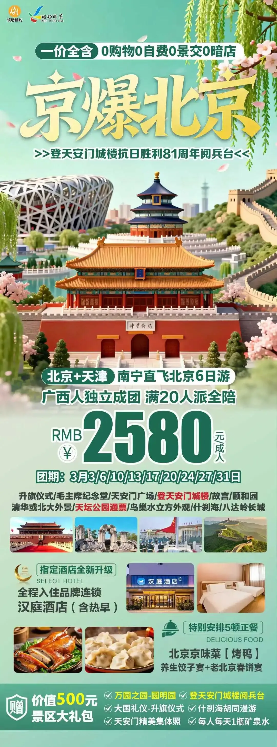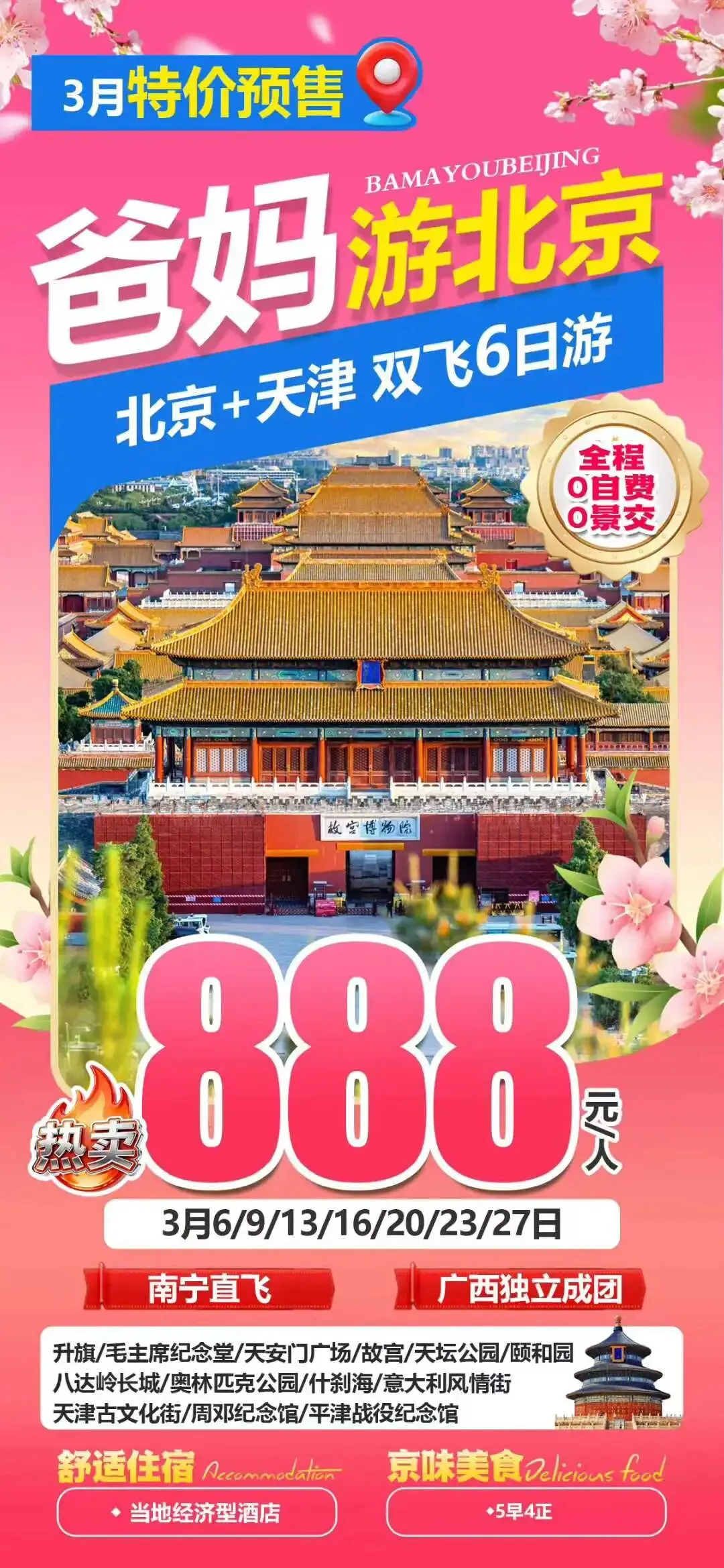 【北京】2月底-3月 北京、天津旅游线路推荐,报名优惠!