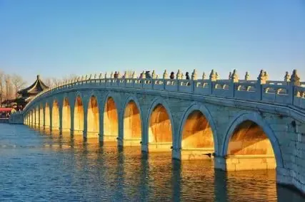 十七孔桥(Seventeen-Arch Bridge),又称长桥,始建于清乾隆十五年(1750年),是连接东堤与南湖岛的石桥,也是我国皇家园林中现存最长的桥梁。