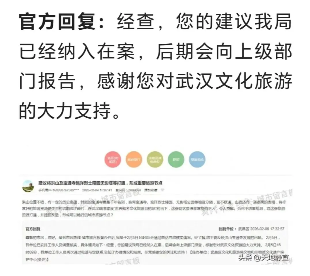 武昌区文旅局2026.2.5答复: