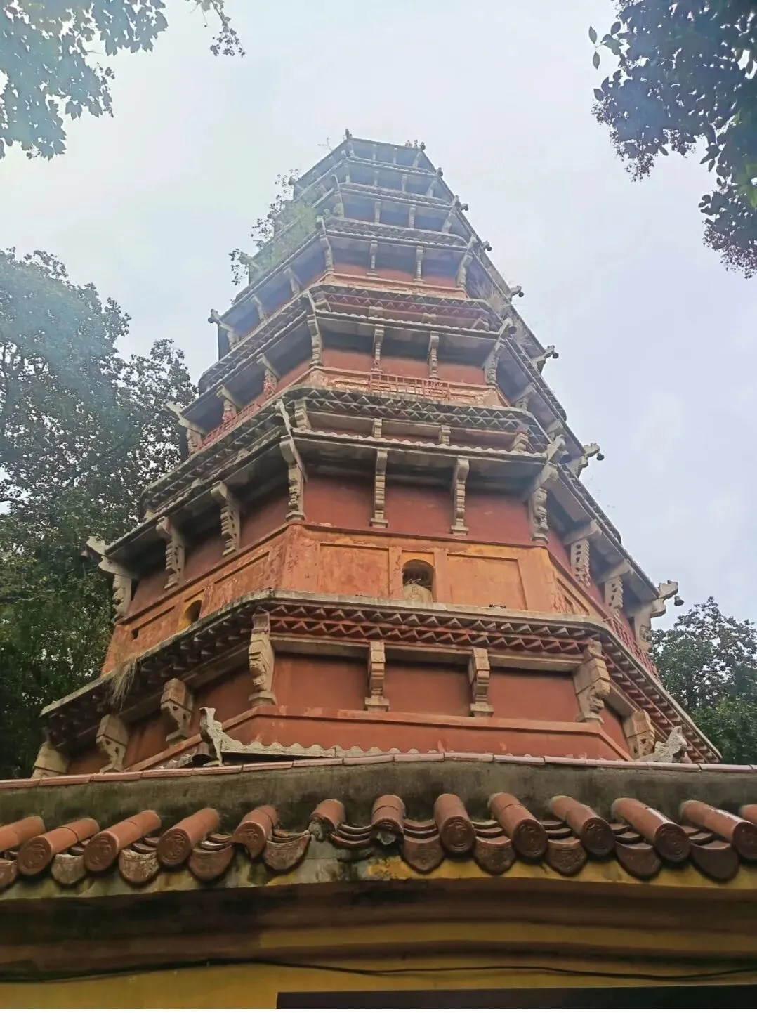 宝通寺是武汉现存历史最久的皇家寺院,洪山宝塔就坐落于寺内后山,这座始建于1280年的砖石塔高44.1米,七层八面,是武汉地标性古建之一,登塔即可俯瞰三镇风光,塔下还种植着正宗的洪山菜苔,“塔影钟声映紫崧”的景致流传已久。