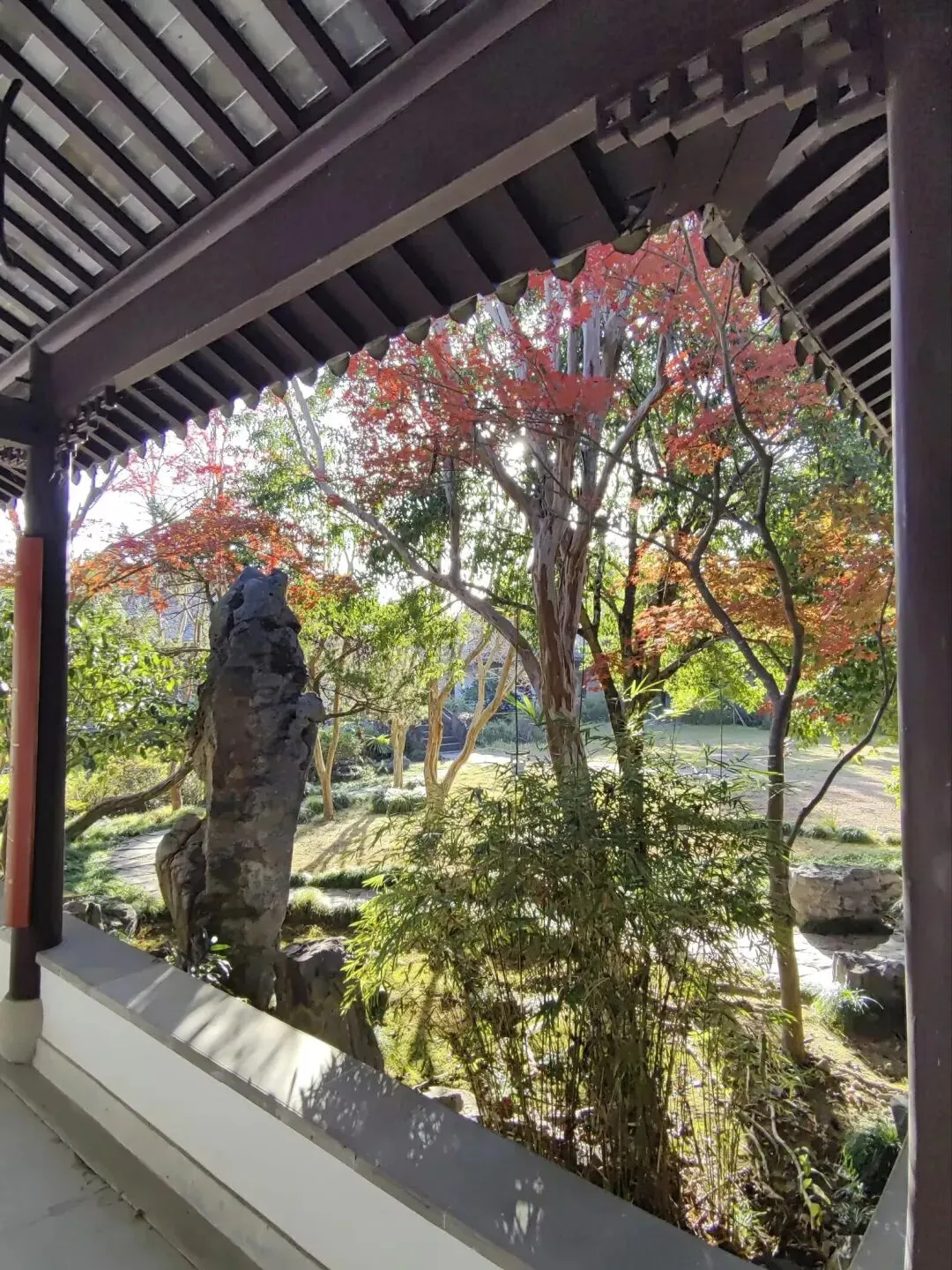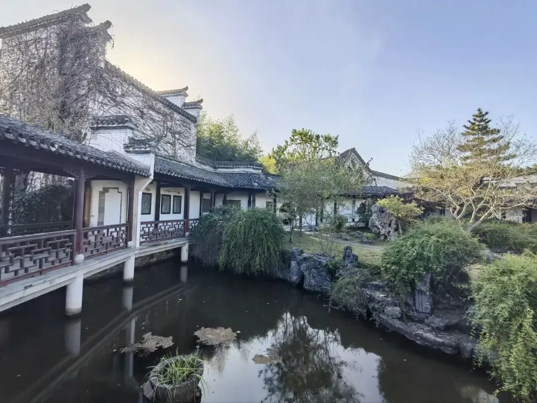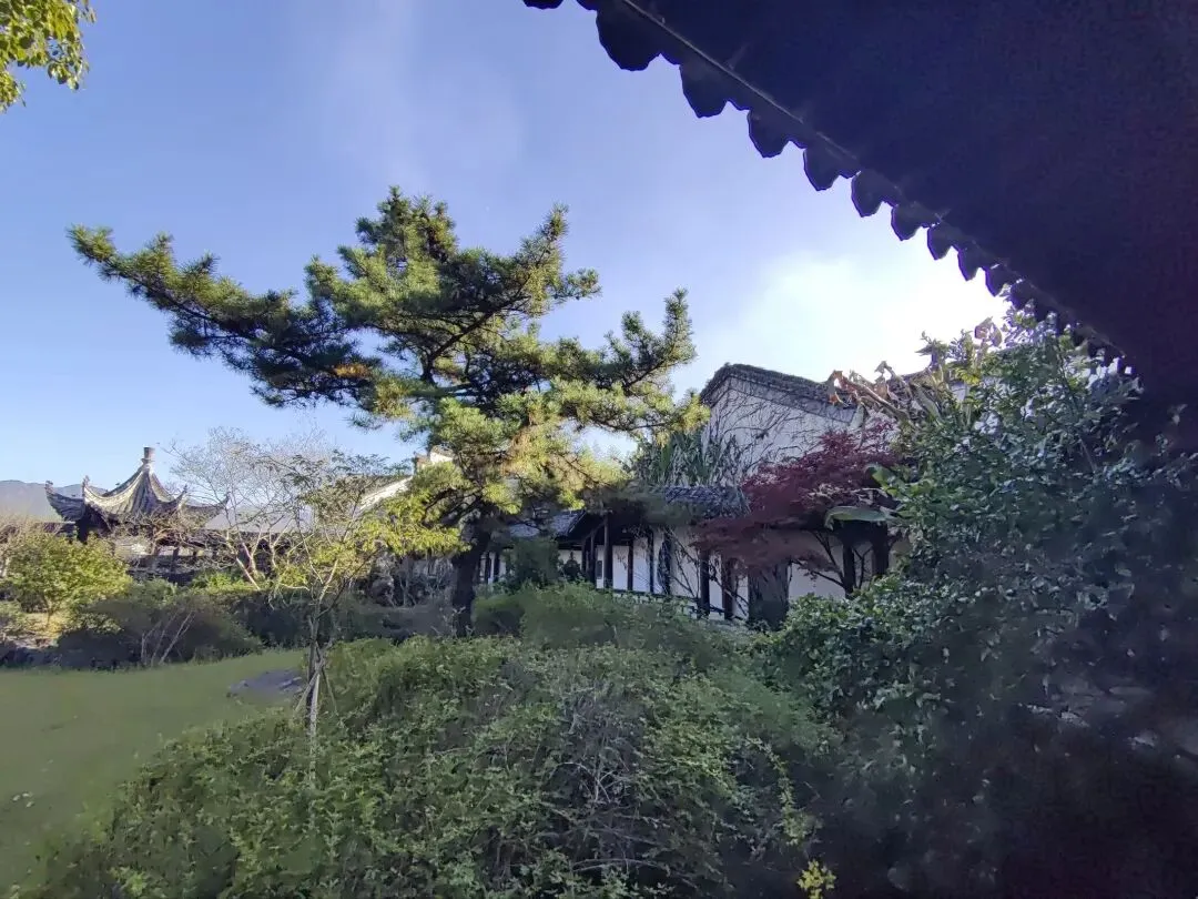“ 归园”是典型的徽派园林,融合了徽州民居的古朴与江南园林的雅致。 漫步林园内,亭台楼榭、假山池桥、曲径漏窗、修竹古樟与傍水而建的直廊、曲廊、爬坡廊一同勾勒出一幅醉人的江南山水画。