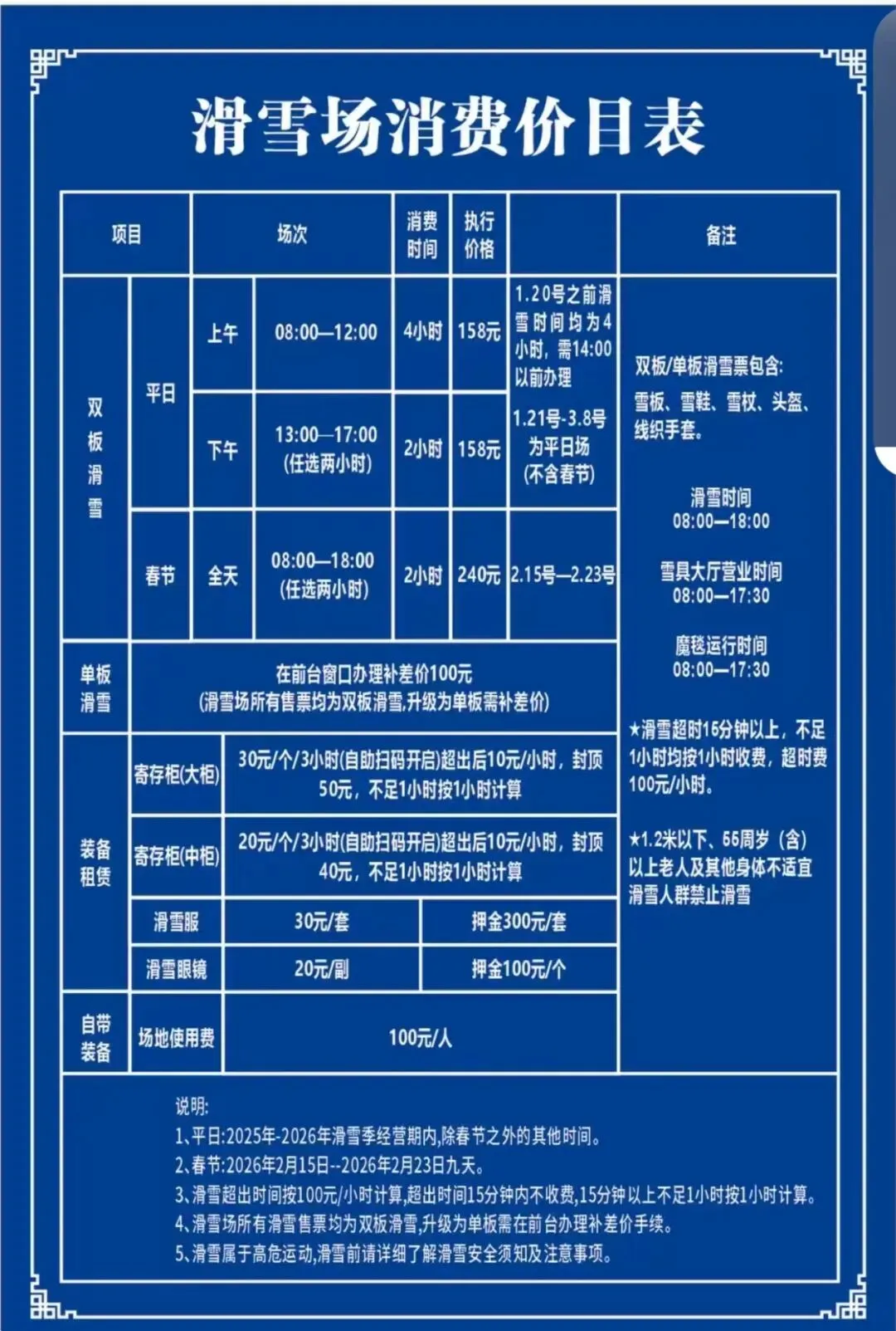 3、门票:百里荒景区3小时滑雪票(计时规则:从领取雪板开始,到归还结束);