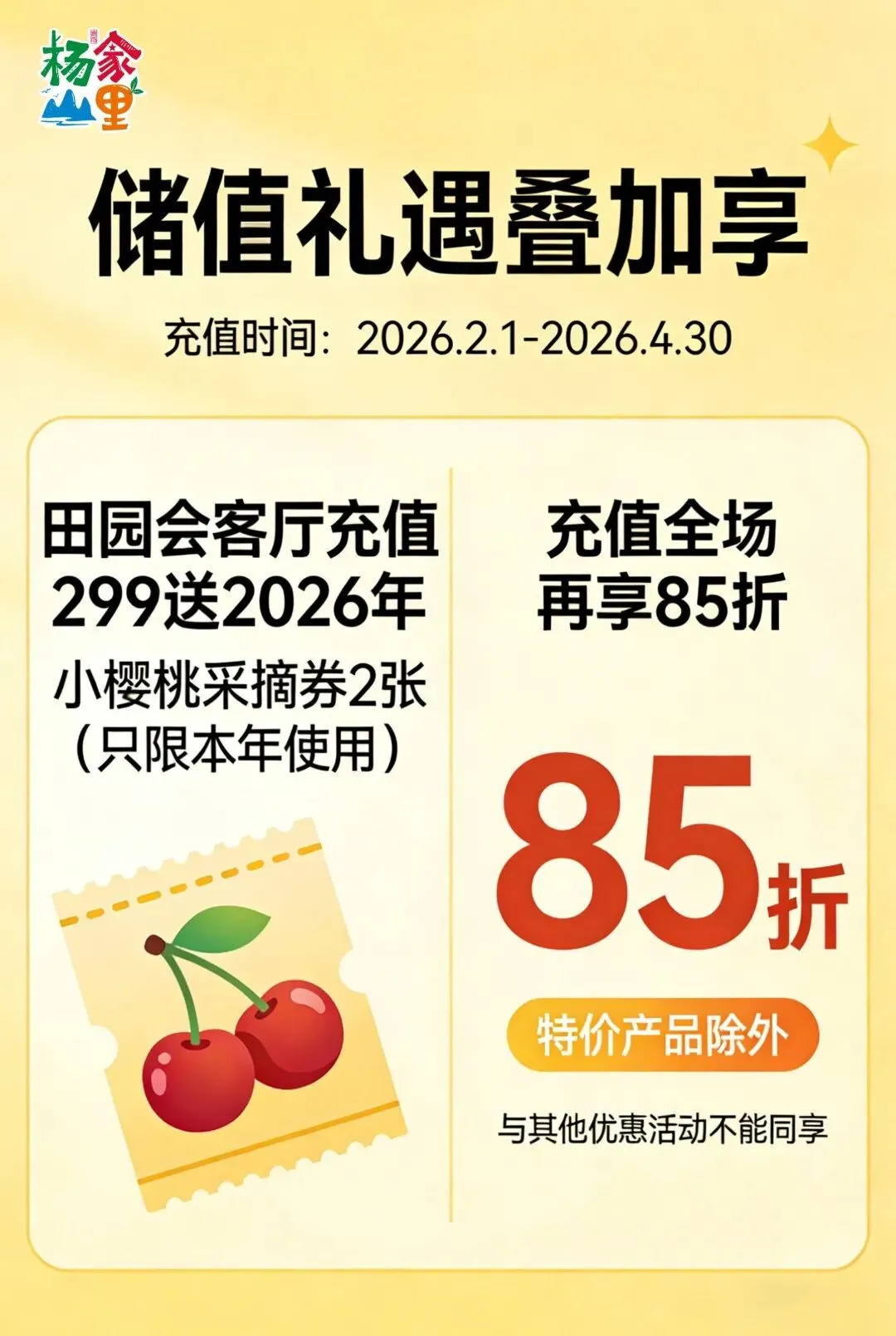 杨家山里田园会客厅储值299元,不仅是消费金,更是 “未来财富”。