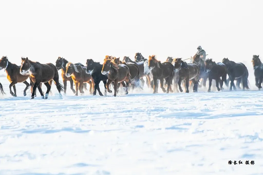 :雪后雾凇、马踏飞雪、雪原日出、星空;冬季风光 + 马主题。