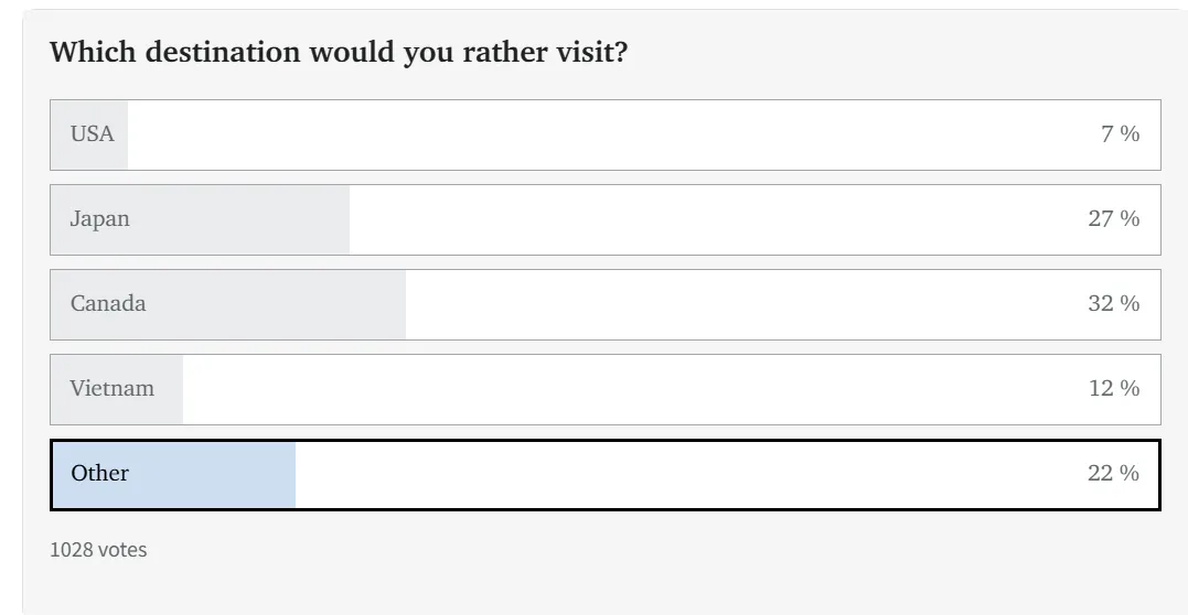 与此同时,前往日本、加拿大和越南等热门目的地的国际旅行则大幅增长,增幅最高达 30%。