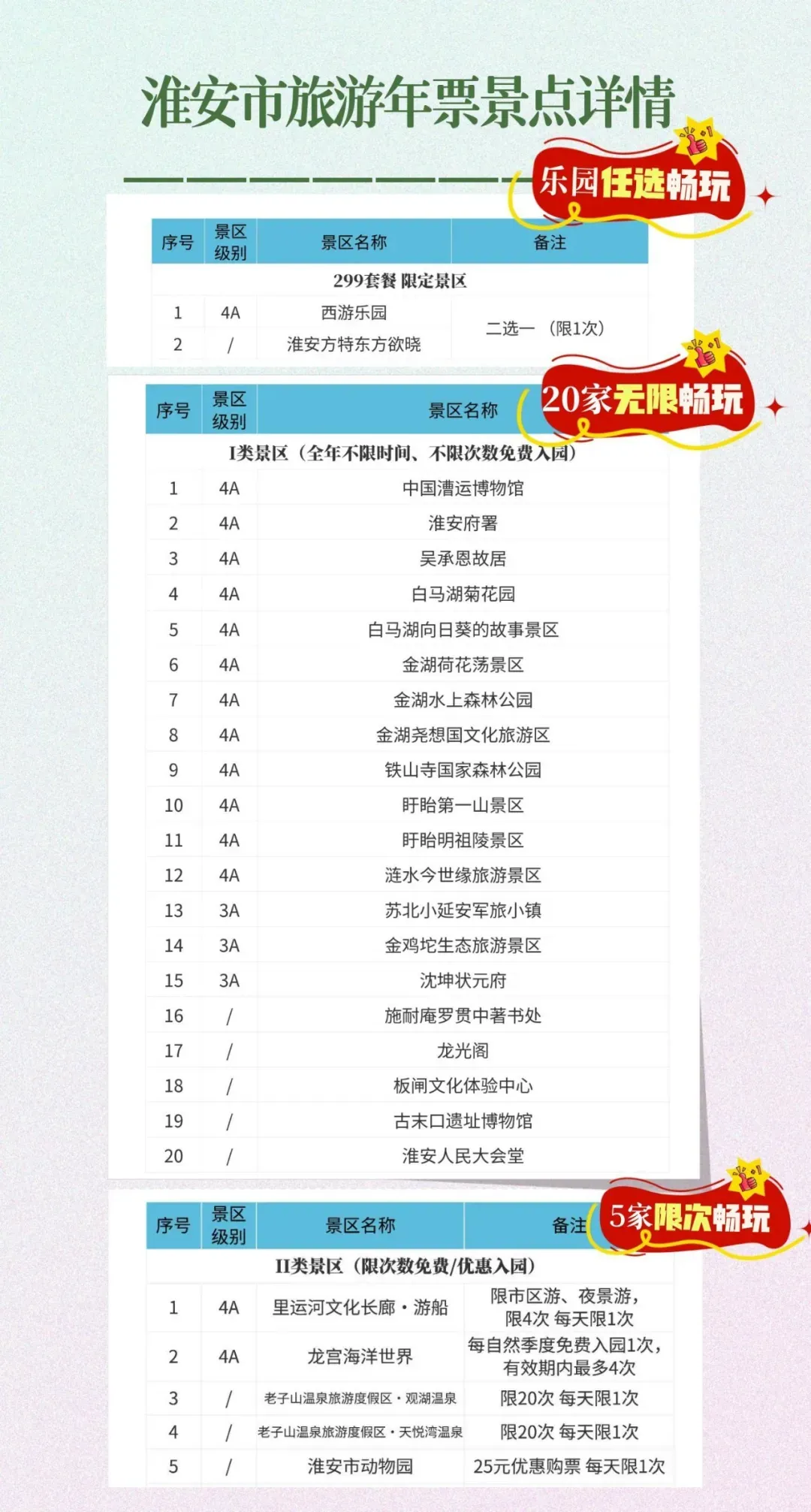 春节假期期间,景区的精彩仍在继续,美陈打卡、互动体验、特色活动不停歇,诚邀大家带上家人朋友,一起来赴这场新春之约,在酒香与欢喜中,热热闹闹过大年。我们在今世缘,等你赴约!新来的朋友可能还不太了解我们淮安旅游年票,那就点击下图,1分钟就能让你了解淮安旅游年票的超值权益: