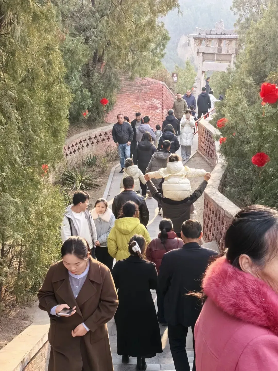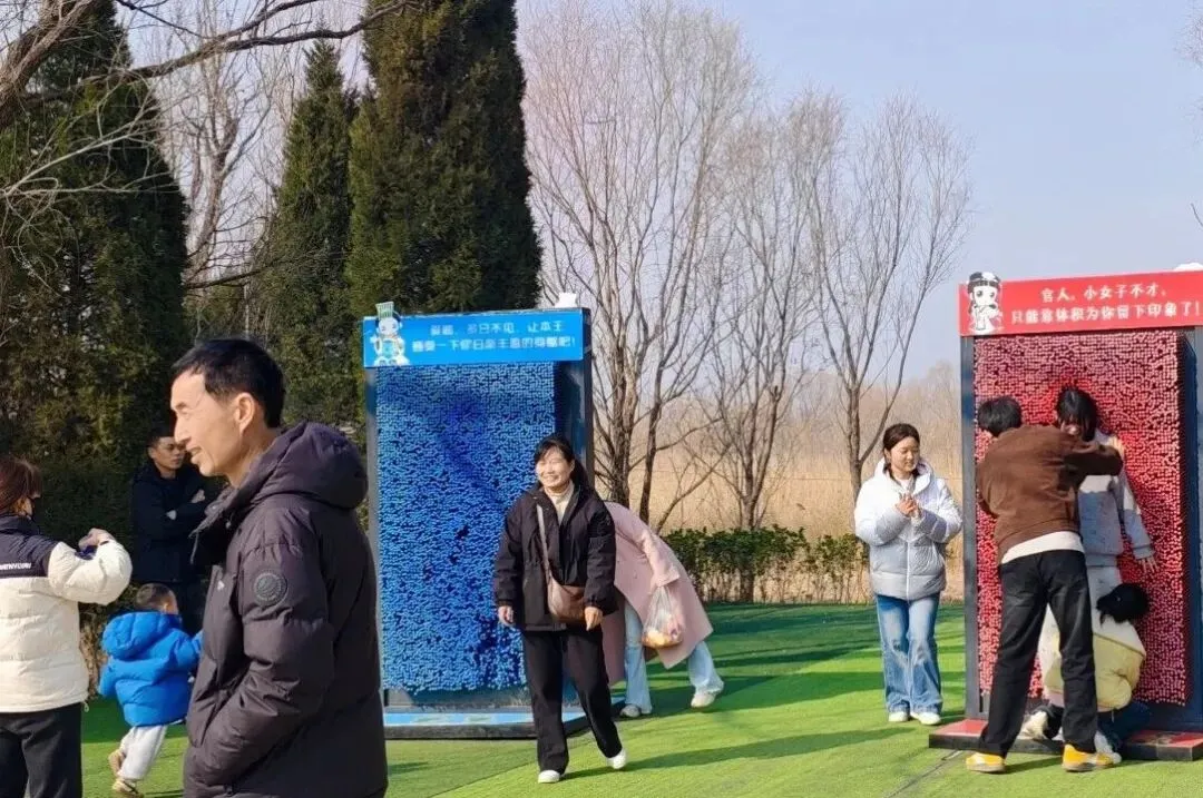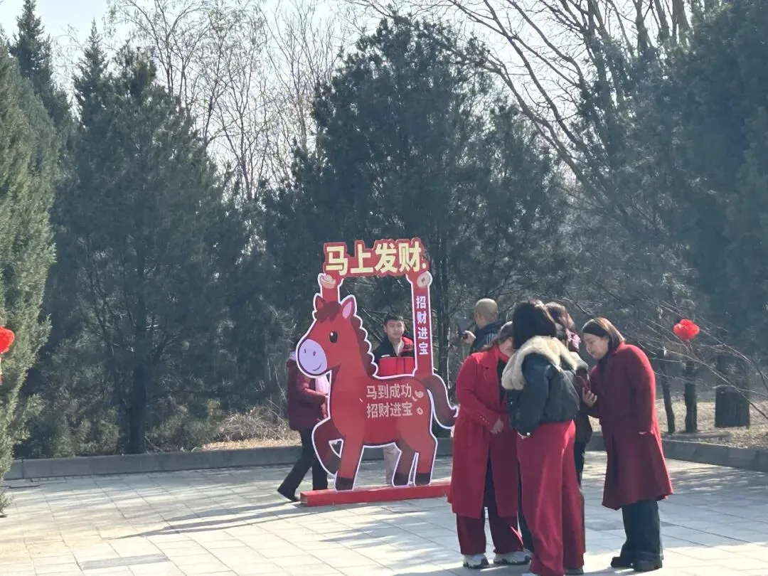 3.活动内容:春节期间,在处女泉景区入口处设立一座融合春节元素的红色拱形门,门上装饰各种吉祥纹样。门旁设置互动拍照立牌,游客可在此合影留念,开启景区游览的第一重仪式感。